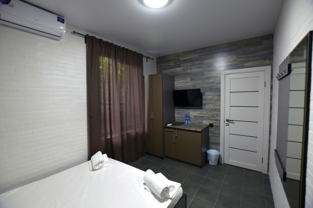 Стандартный номер, небольшой площади. Отлично подойдет, для семейной пары, или пары с маленьким ребенком. Номер оборудован всем необходимым.