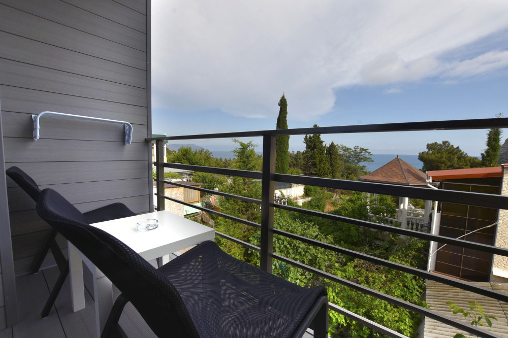 Большой просторный номер с балконом и видом на море. Отлично подойдет для большой семьи, либо для семейной пары и двух детей.