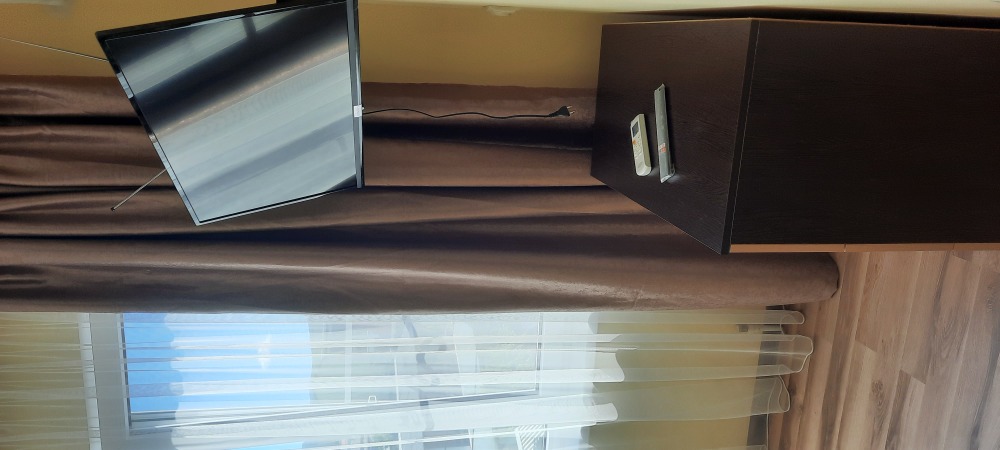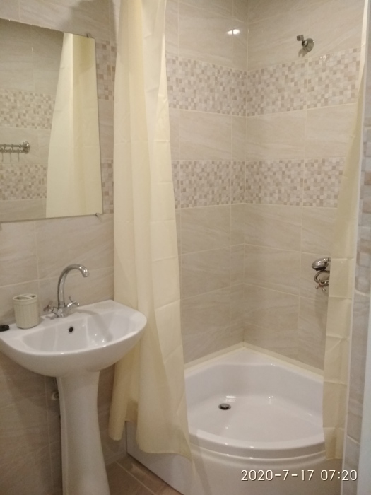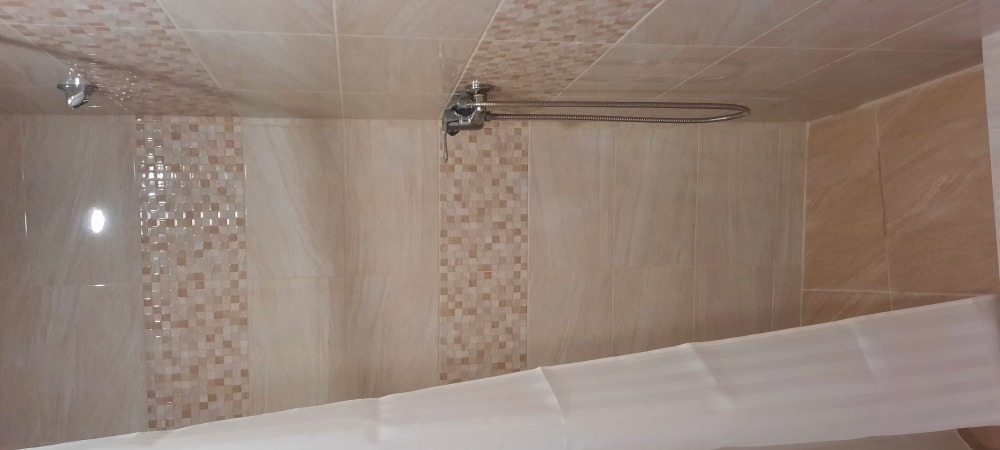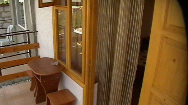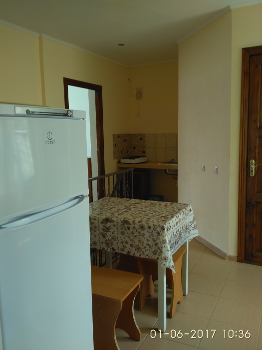 Двухместная комната на третьем этаже. Внутри душ,туалет,телевизор,холодильник,кондиционер. Балкон со столиком ,Хороший вод на горы. Не большая кухя на этаже на две комнаты.