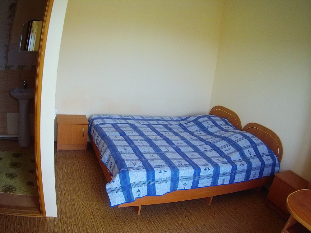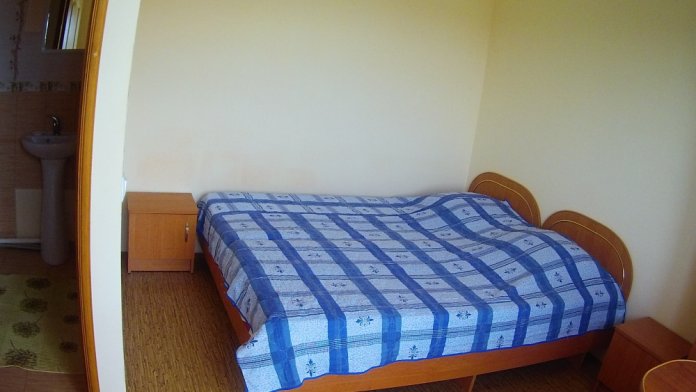 Не большая двухместная комната на втором этаже. Вутри душ,туалет,телевизор,холодильник,кондиционер.Кухня общая.