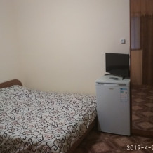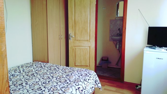 Трехместная комната эконом на первом этаже. Внутри душ туалет,телевизор ,вентилятор. Кухня общая холодильник на кухне.