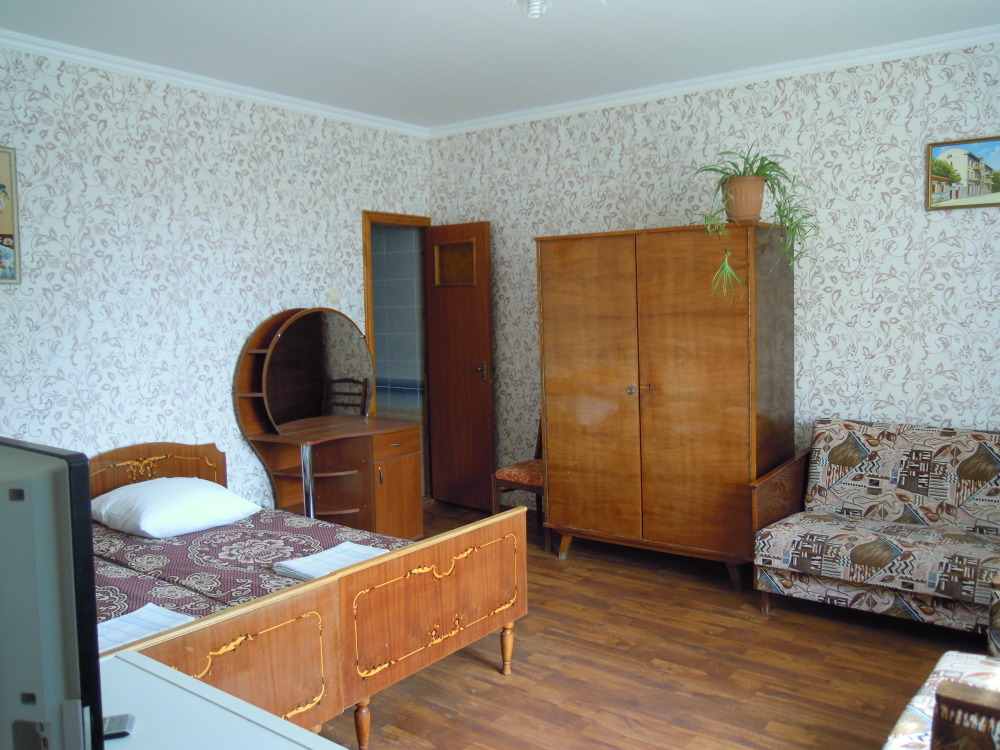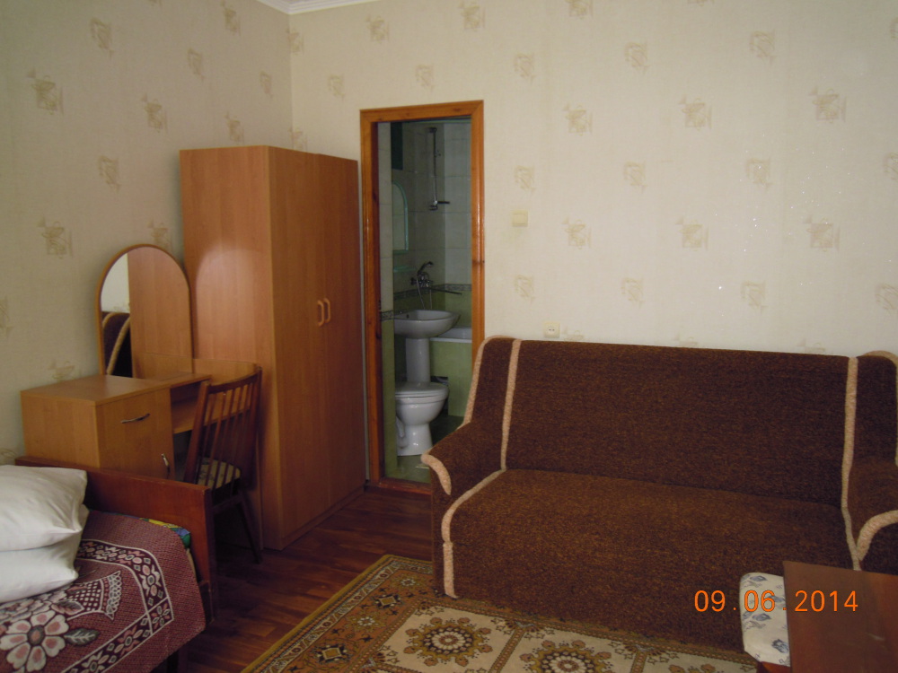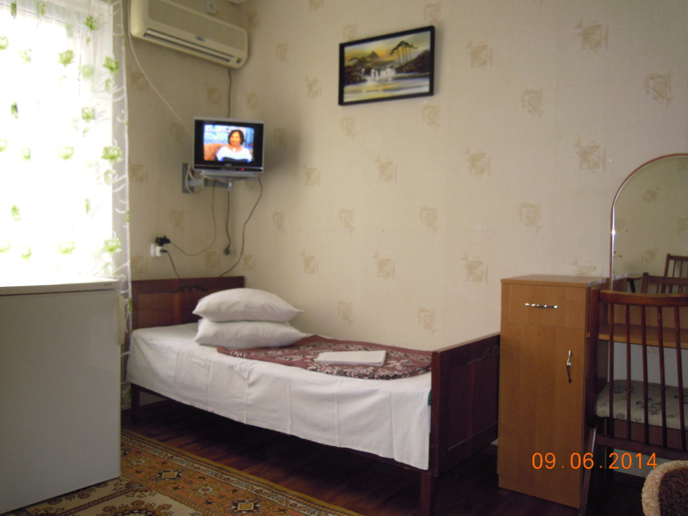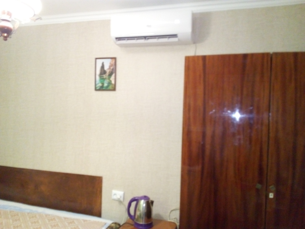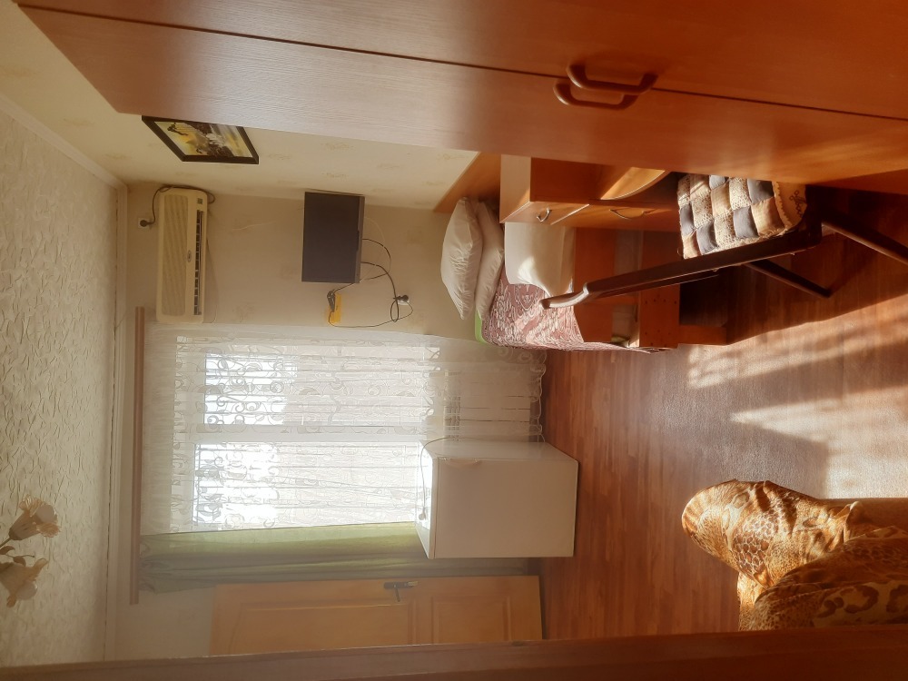 В комнате: кровать, диван-кровать, кондиционер, шкаф, т/в, холодильник, эл. чайник.