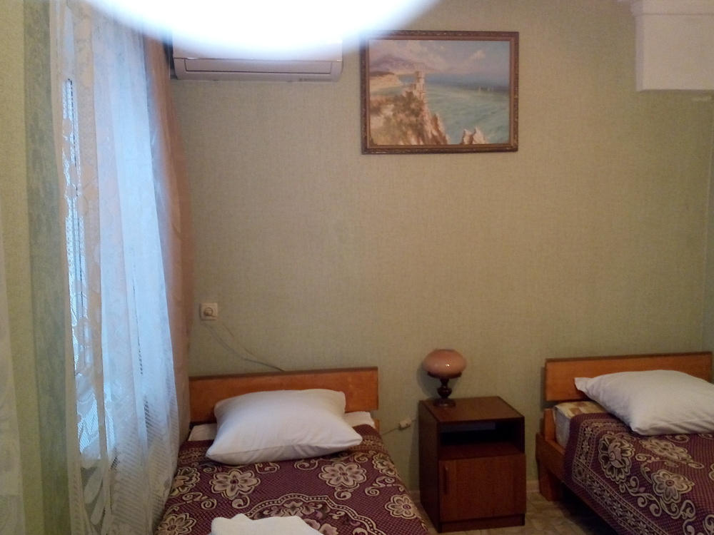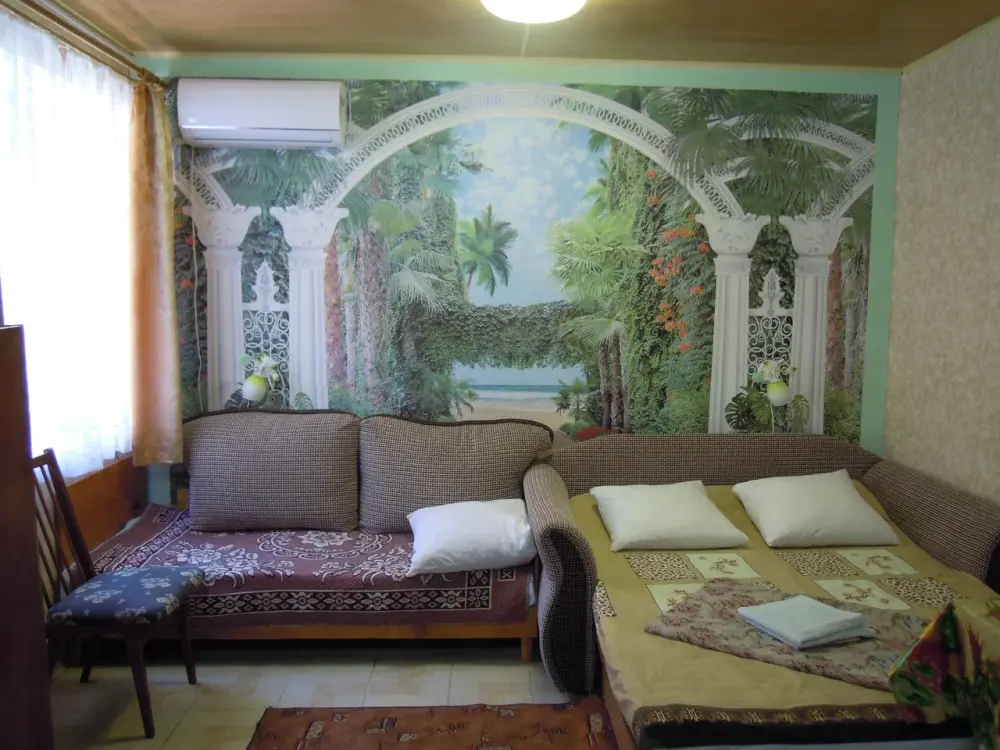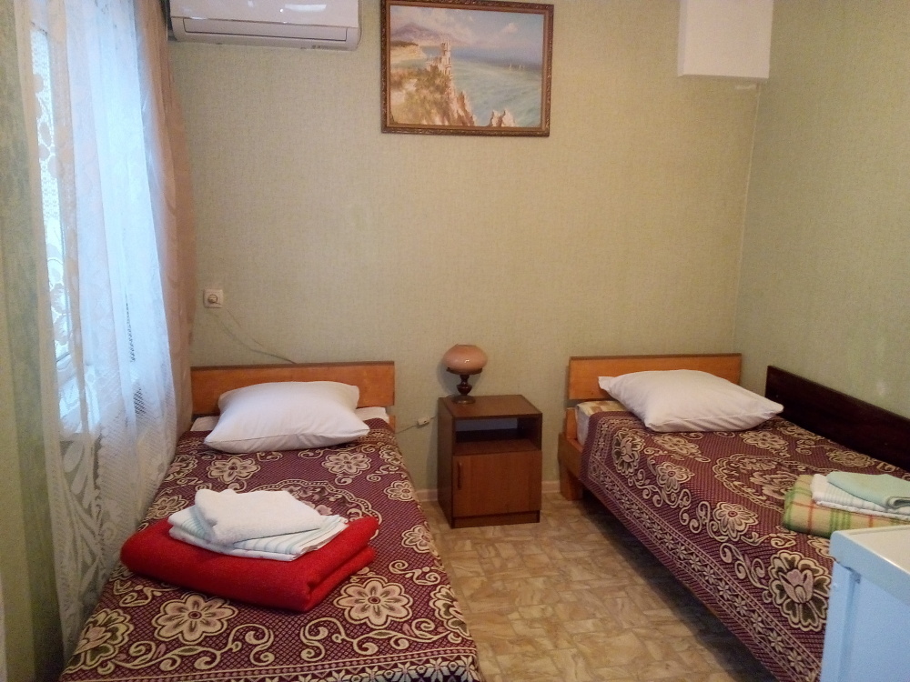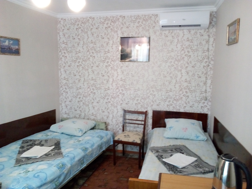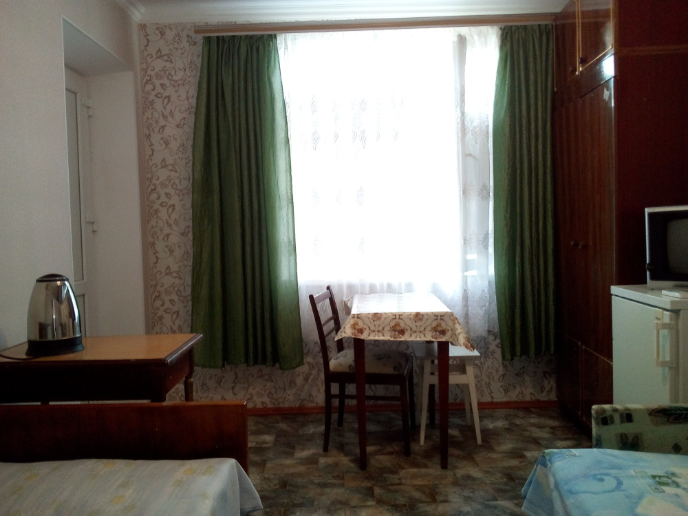 В комнате: кровать, диван-кровать, кондиционер, шкаф, т/в, холодильник, эл. чайник.