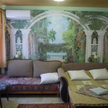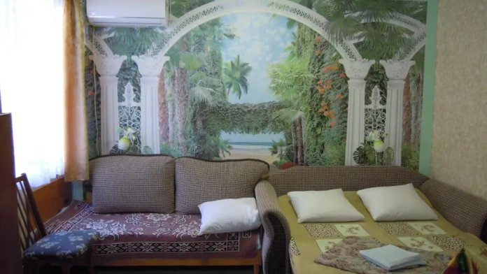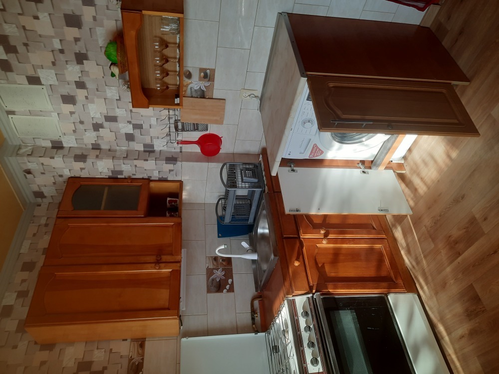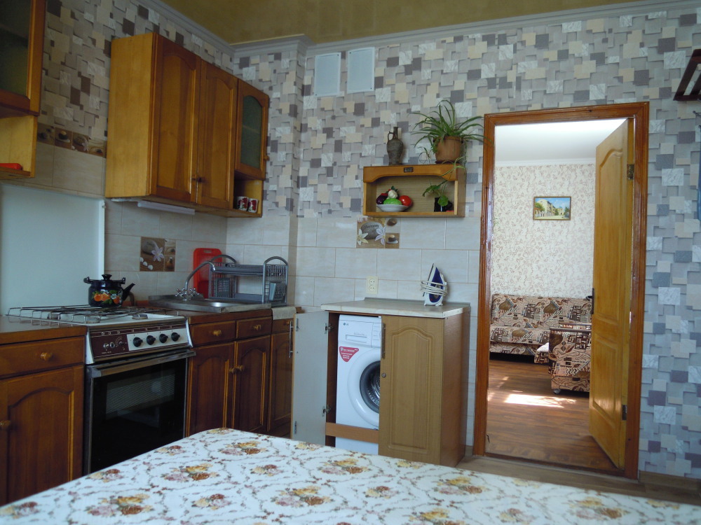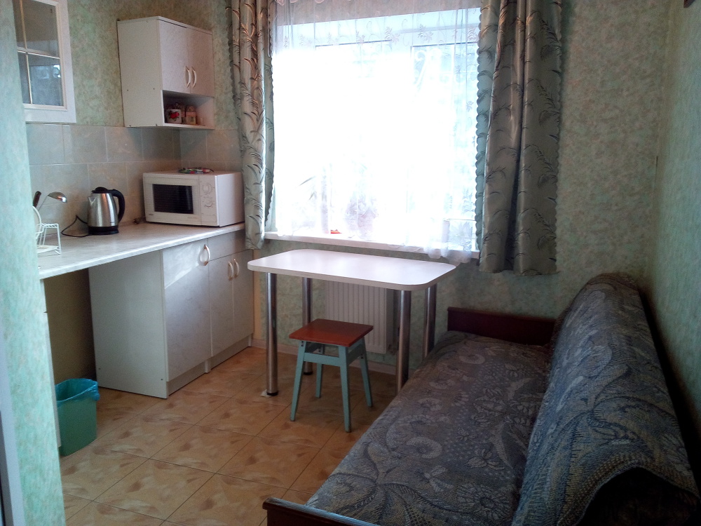 В комнате односпальная кровать, 2-спальный диван-кровать, шкаф, зеркало, холодильник, т/в, кондиционер. Кухня на 2 комнаты с достаточным количеством шкафчиков, стиральная машина, обеденный стол. Лоджия. На лоджии обеденный стол. Интернет.