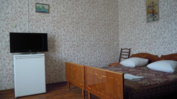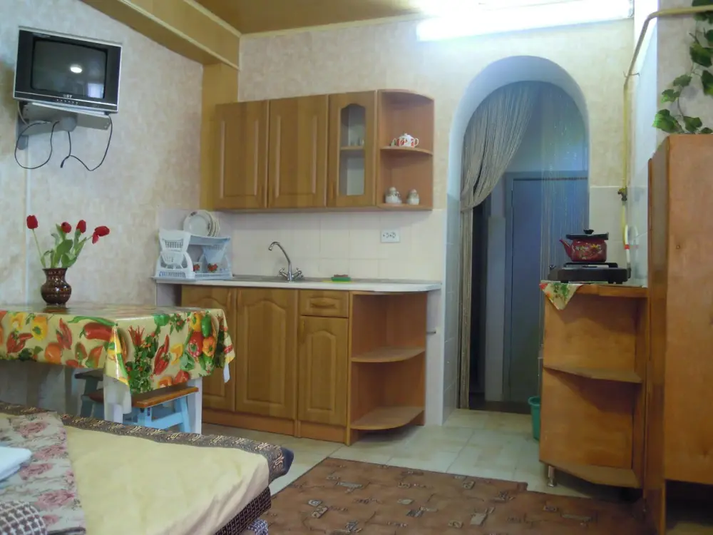 Шкаф, холодильник, кондиционер, т/в, туалет, душ раздельные, WI-Fi. Мини-кухня с необходимой мебелью, газовая плита, посуда.