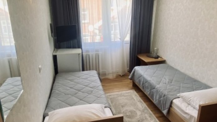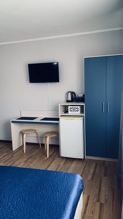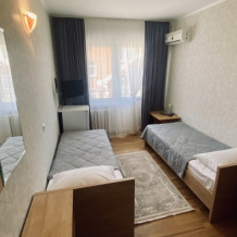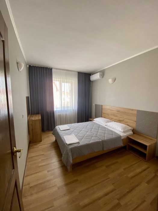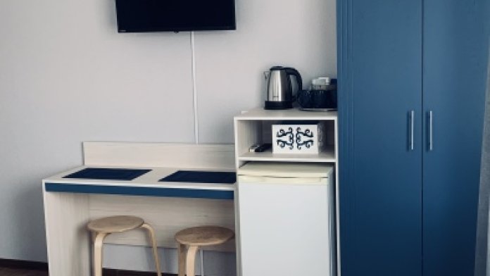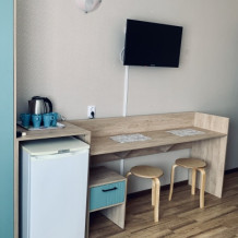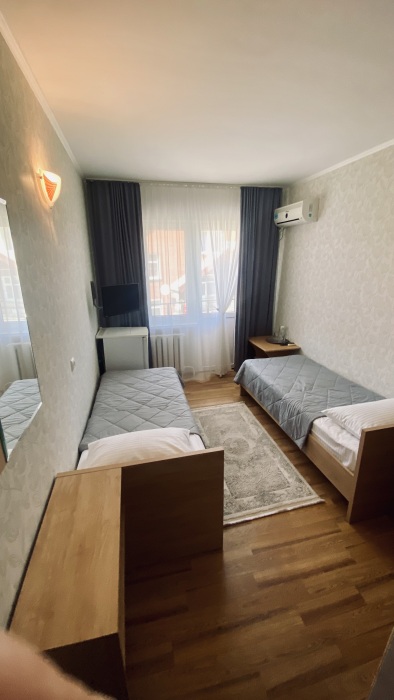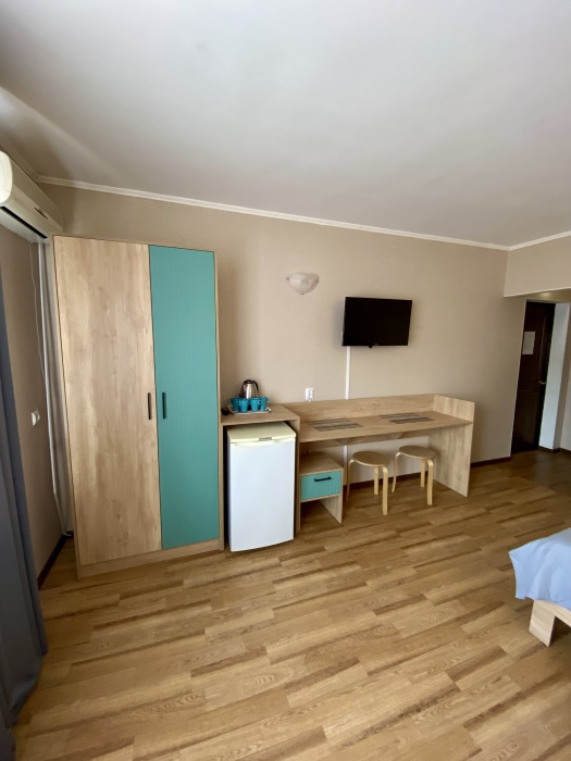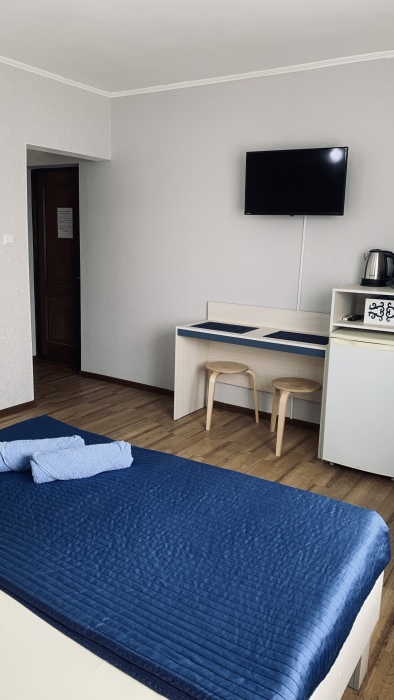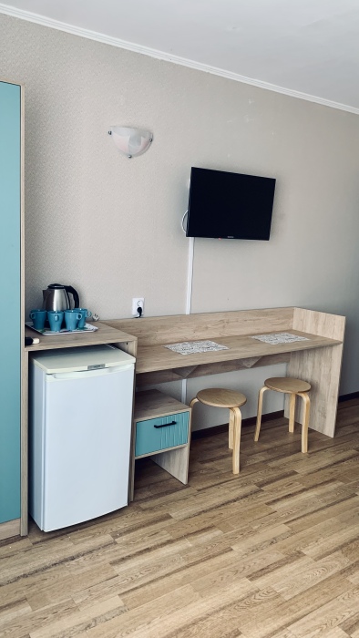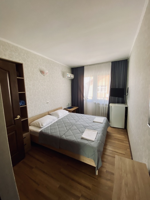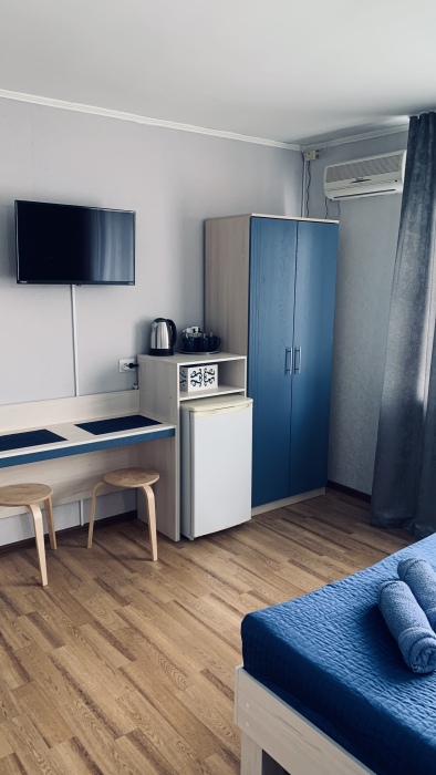 Удобный, двухместный номер с удобствами , категории «Стандарт» для гостей, предпочитающий функциональность. Обстановка располагает к неспешному отдыху, возможно использовать, как одноместное размещение. Номер оснащён кондиционером, телевизором, санузлом, бельём, стаканными принадлежностями. На общей кухне имеется вся необходимая кухонная утварь для комфортного отдыха.