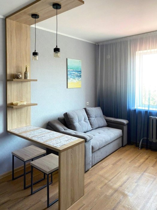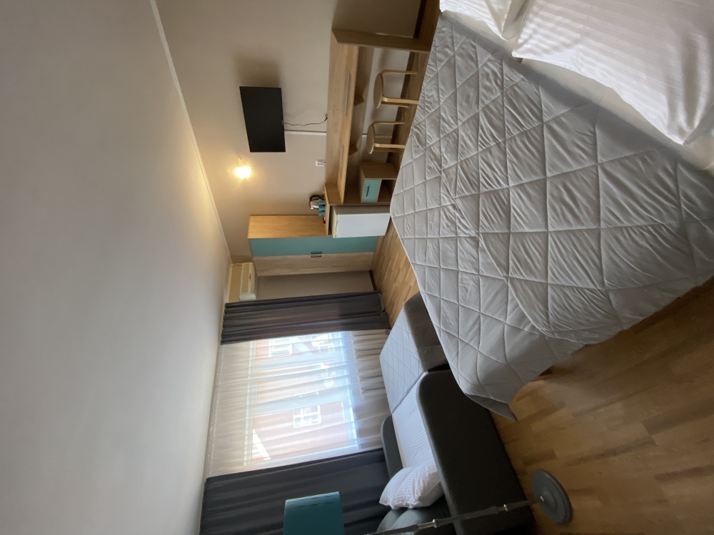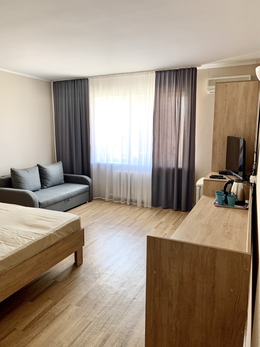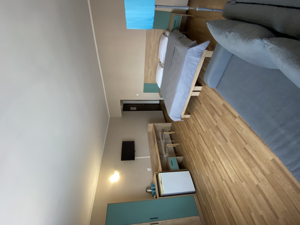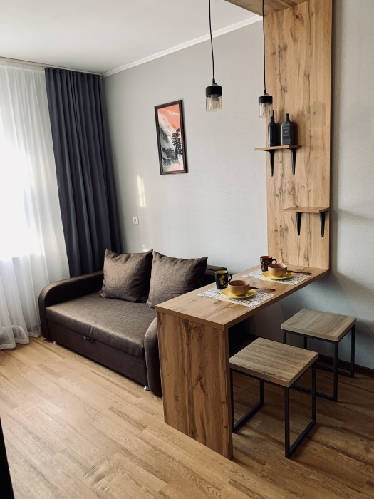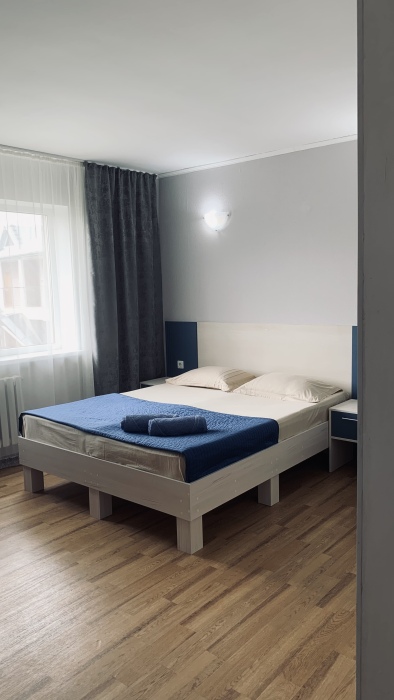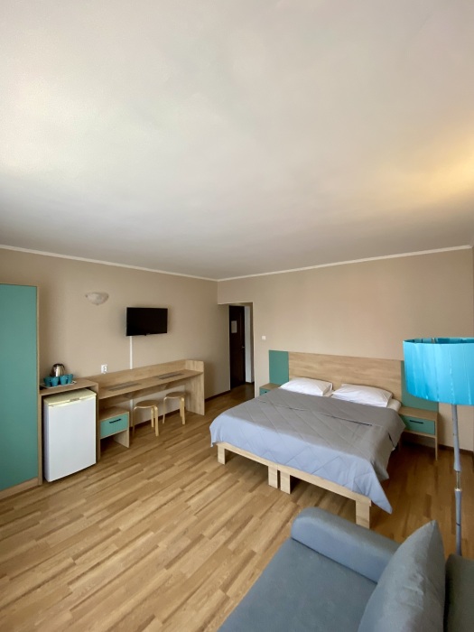 Современный просторный номер Комфорт подойдет для семьи с детьми , так и для супружеской пары . В номере широкая двуспальная кровать , которая трансформируется в две односпальные ( идеально для семьи с разнополыми детьми) и двухместный диван 140/200. Номер оснощен кондиционером, холодильником , а также чайником и чайными принадлежностями, поэтому утренним чай- кофе можно приготовить прямо в номере, а для полноценного приготовления воспользоваться кухней самообслуживания, которая находится на этаж ниже.