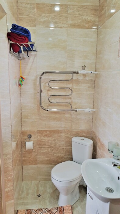 Санузел Совмещенный. Душ, раковина, унитаз.