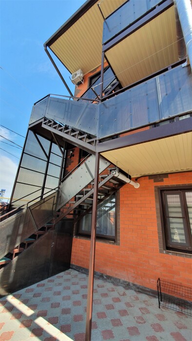 Небольшой двор, общий на 3 семьи. Мангал, шампура.