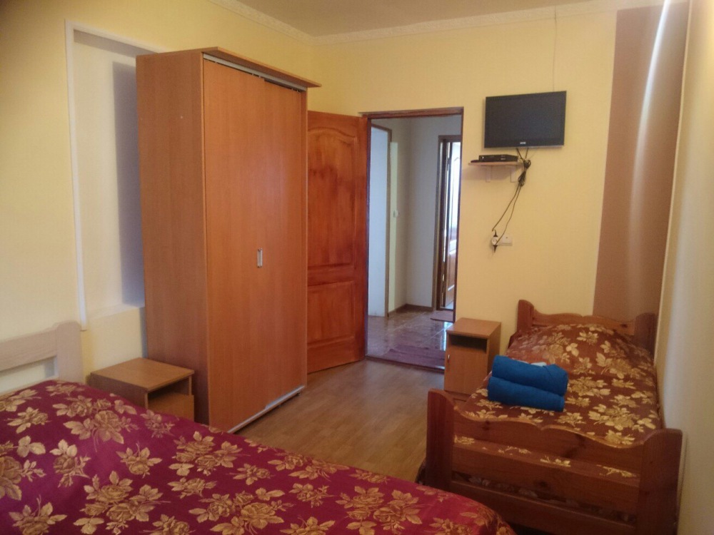 В доме имеются однокомнатные и двухкомнатные номера. Однокомнатные номера рассчитаны на 3 человека, двухкомнатные - на 6 человек. Каждый номер со своим входом. В номере имеется вся необходимая мебель: двухспальная кровать, односпальная кровать, постельное белье, полотенца, шкаф, тумбочки, зеркало, Wi-Fi, кондиционер, спутниковое телевидение. Также в каждом номере имеется кухня с обеденной зоной, в которой газовая печь, холодильник и вся кухонная посуда+ столовые приборы. Ванная комната оборудована современной сантехникой, стиральная машина, душевая, туалетная комната. Также бесплатно предоставляется использование стиральной машины, гладильной системы, фена для волос.