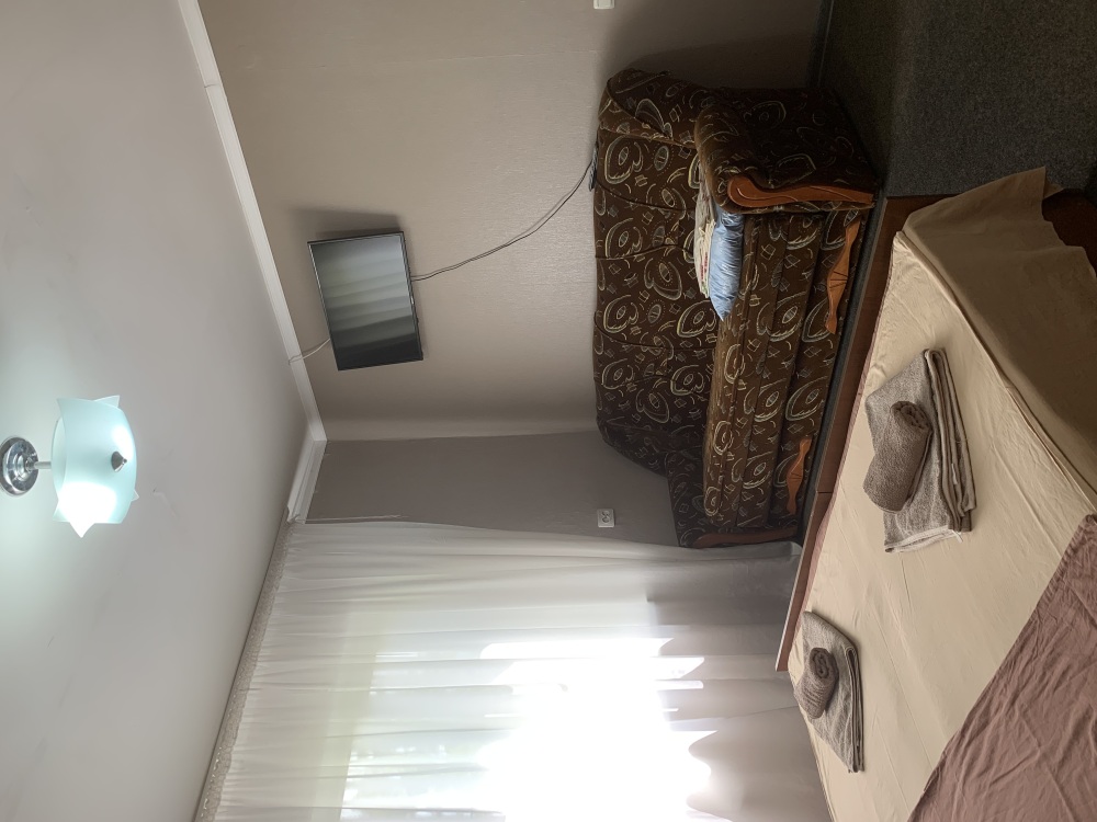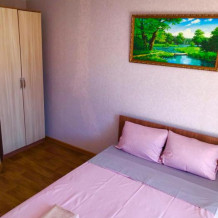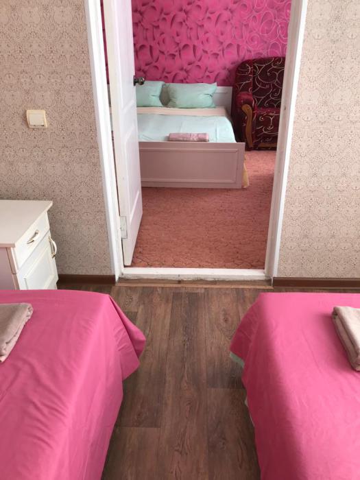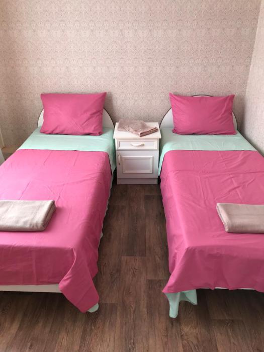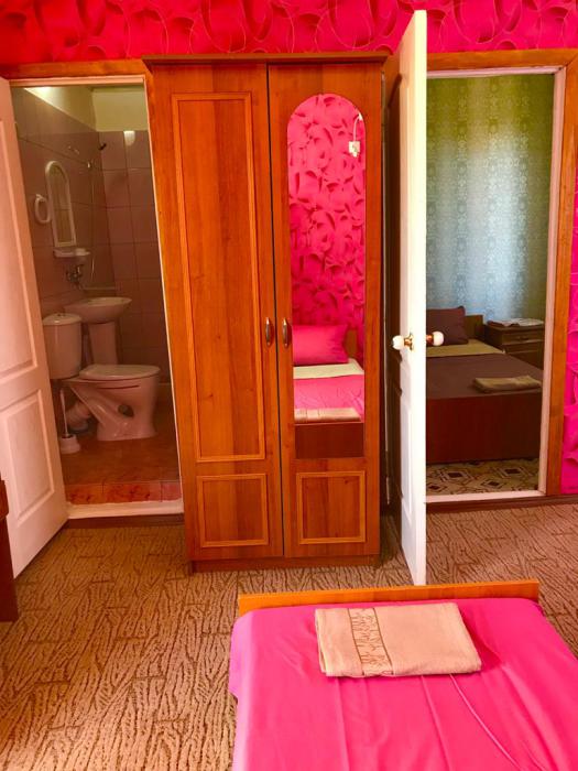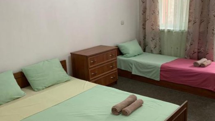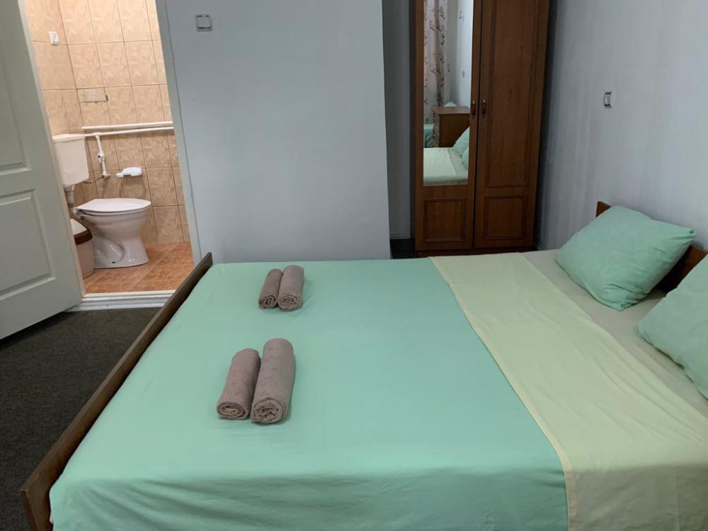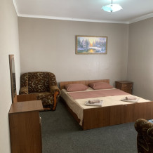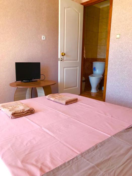 в номере одна двух спальная кровать,шкаф,тумбочка,кондиционер,холодильник,телевизор, санузел (холодная и горячая вода постоянно) , интернет.