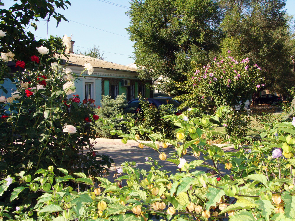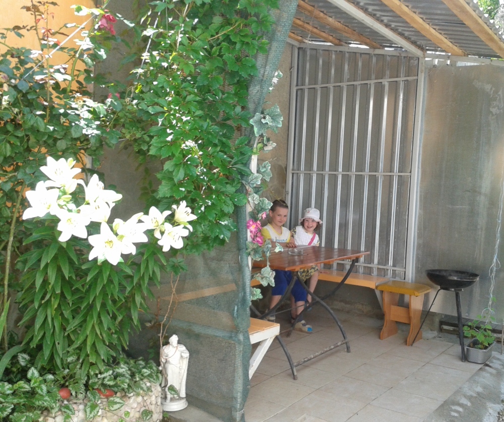 Большая беседка, цветы, прохлада, всем хватит места для отдыха. Мангал, шампуры- в соседнем доме мясной магазин.