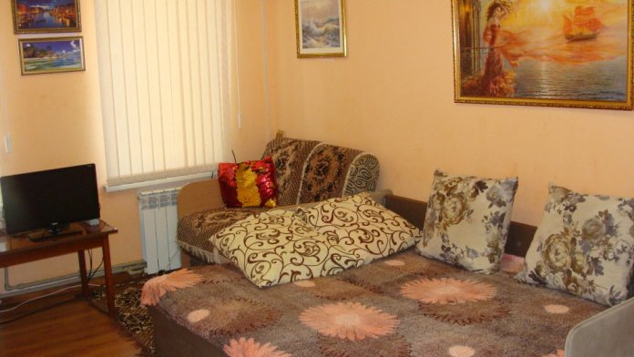 Две раздельные комнаты с обновленной мебелью (2-спальная и односпальная кровати), платяные шкафы (двухстворчатый большой зеркальный шкаф и угловой), кондиционер и вентилятор. Плазменный телевизор в столовой и по телевизору в каждой комнате. Возможность дополнительных мест.
