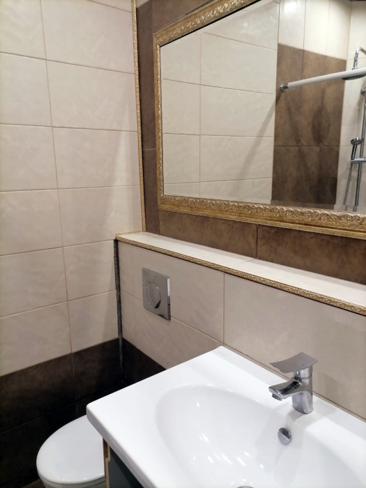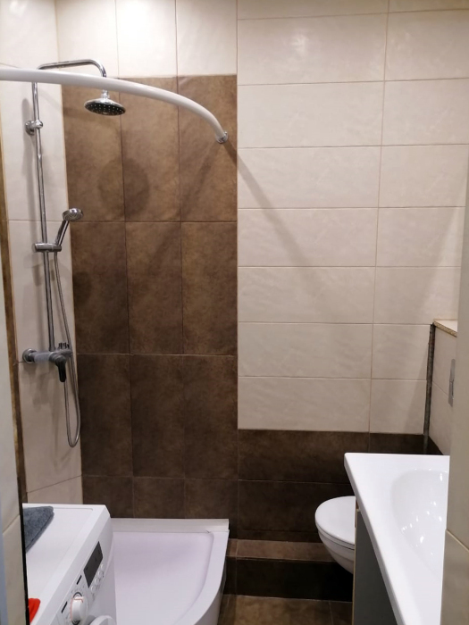 Квартира-студия оснащена всем необходимым: Wi-Fi, телевизор, кондиционер, кухня и ванная комната.