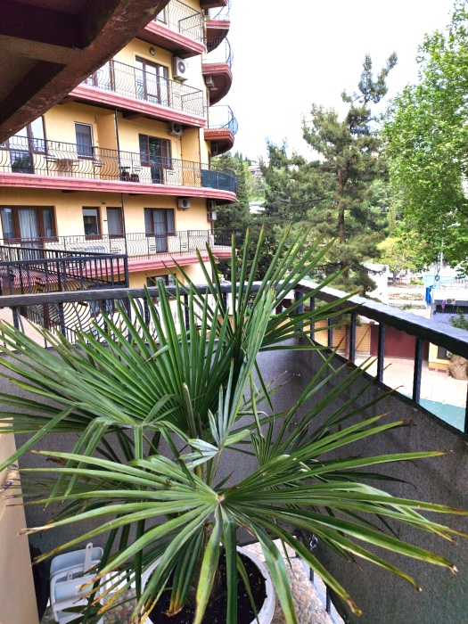 Апартаменты-студия с террасой в 50 метрах от проходной санатория «Крым», в 150 метрах от моря, в самом сердце субтропиков, в Партенитской долине утопающей в зелени кипарисов, кедров, магнолий, пальм, эвкалиптов, лаванды у подножия горы Аю-Даг (Медведь-гора). В шаговой доступности кафе и рестораны, магазины, сувенирные лавки, администрация, полиция, поликлиника.
