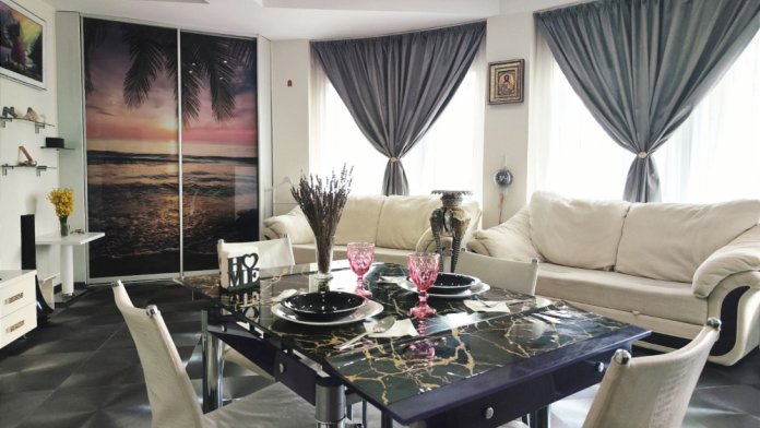Ремонт дизайнерский. Есть всё необходимое для комфортного проживания: стиральная машина, индукционная плита, духовой шкаф, холодильник, кофе машина, фильтр воды обратного осмоса, телевизор LG smart TV 65 диагональ (165 см), HD, 4K, приставка TV APPLE 4K, кабельное ТВ 200 HD каналов (активирована платная подписка, онлайн кинотеатр KION МТС), акустика PARROT ZIKMU SOLO 100 wt, кондиционер LG, 2-х зонный увлажнитель воздуха, 4-х антенный роутер с усилителем сигнала, WI-FI (максимальная скорость 100 Мбит/с), видеонаблюдение за бесплатной стоянкой. Предметы искусства, душевая кабина, биде, диваны ортопедические ручной сборки (без переходов), 4 спальных места, постельное белье, подушки, одеяла, пледы, полотенца, фен, утюг, гладильная доска, электро чайник, посуда вся в наличии.