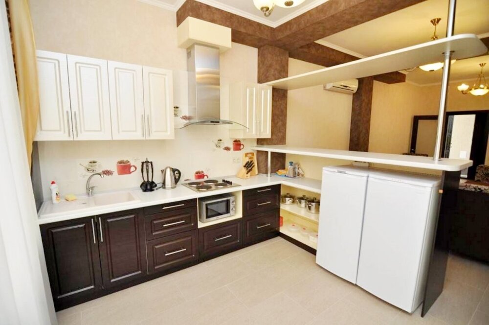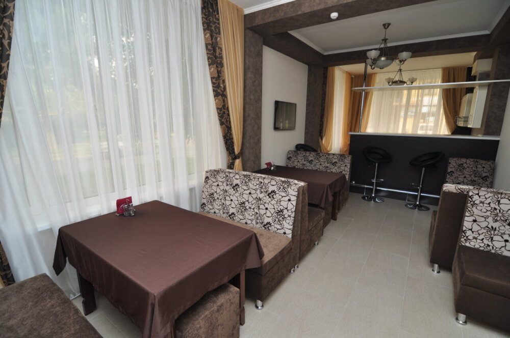 В отеле оборудована удобная и современная кухня. В вашем распоряжении электрическая плита, микроволновая печь, чайник, посуда. Большой обеденный зал с диванами и телевизором - место для отдыха, веселых посиделок, обеда или ужина в своей компании.