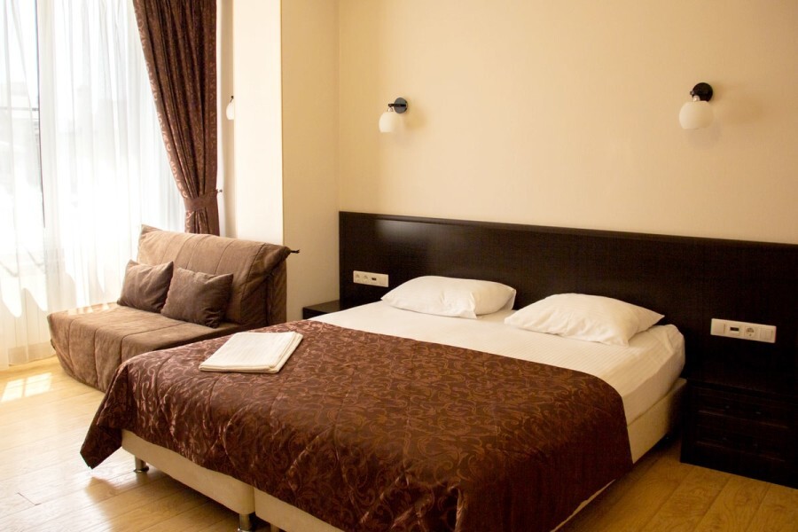 Комфортный трехместный номер с большой двуспальной кроватью и раскладным креслом.