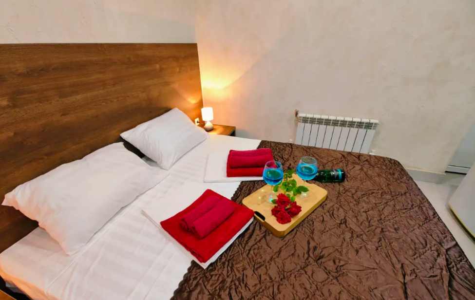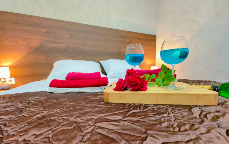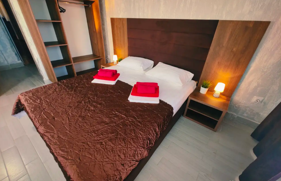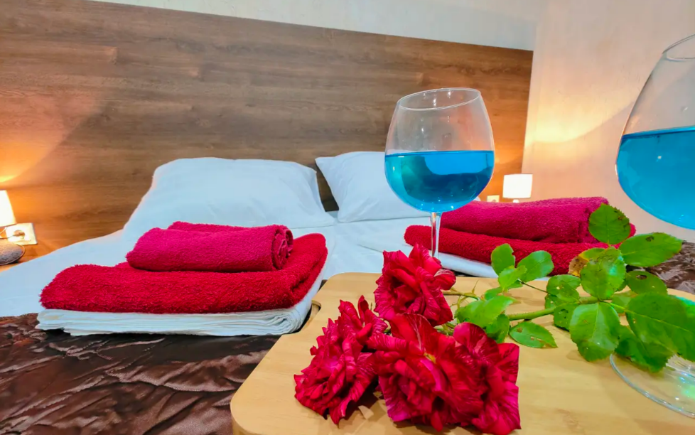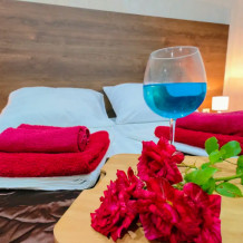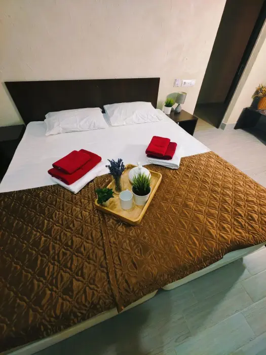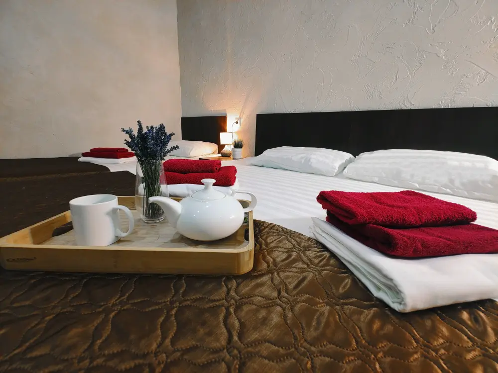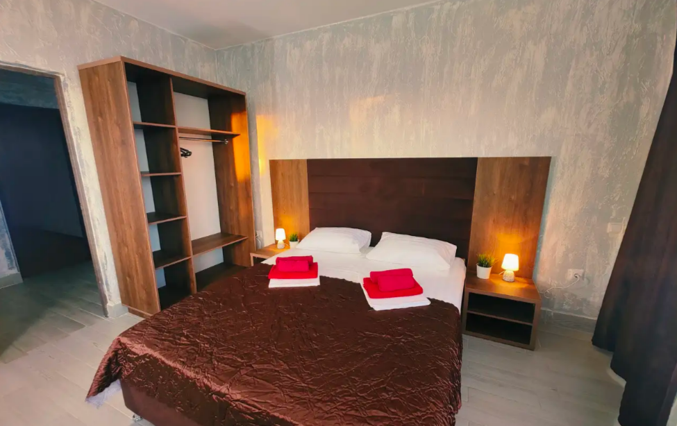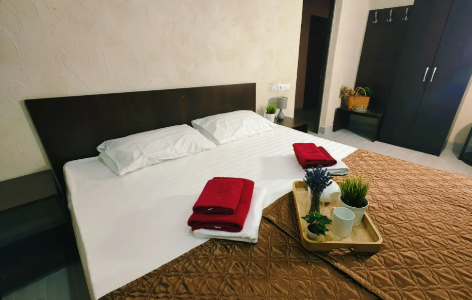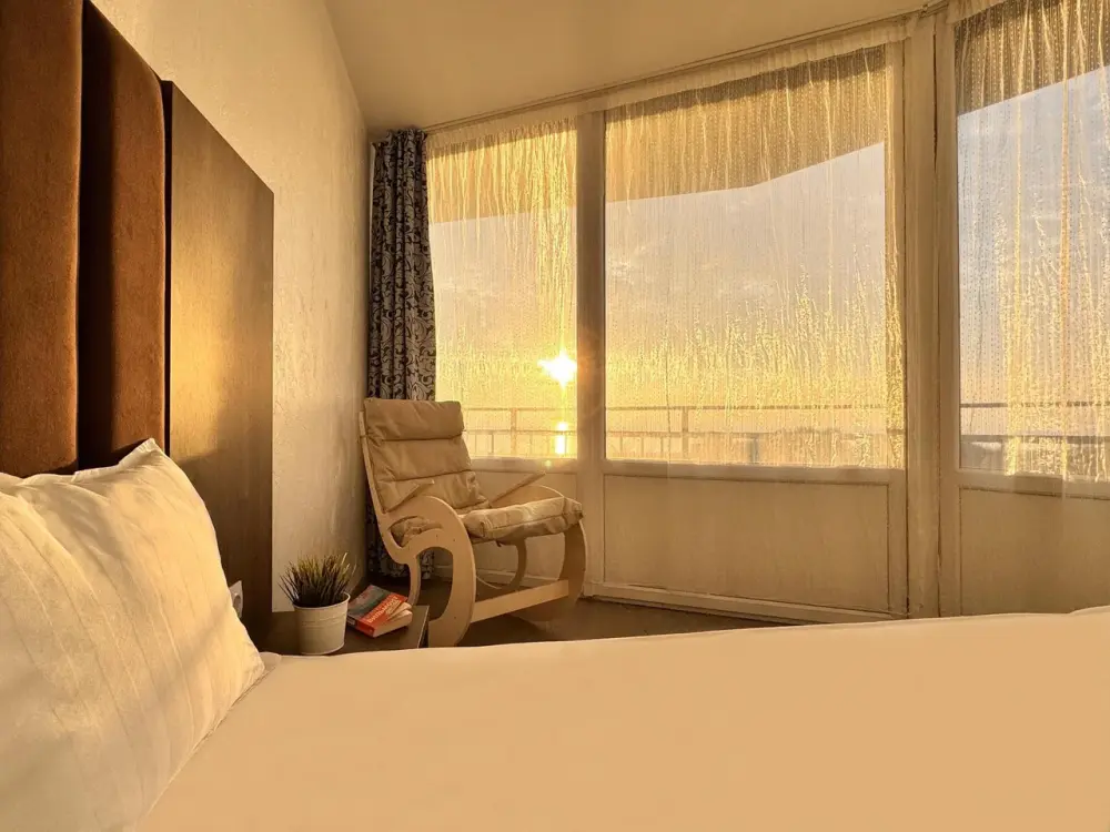 Комфортабельный и уютный двухкомнатный Люкс оснащен: двумя двуспальными кроватями и двуспальным диваном, кондиционером, шкафом для одежды и всей необходимой мебелью. Также в номере есть мини-холодильник, телевизор и Wi-Fi. Имеется просторный балкон для отдыха на свежем воздухе. Проведите незабываемое время в нашем отеле и наслаждайтесь комфортом.