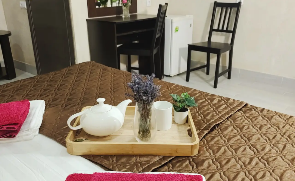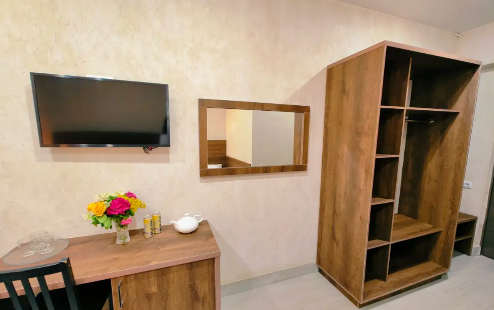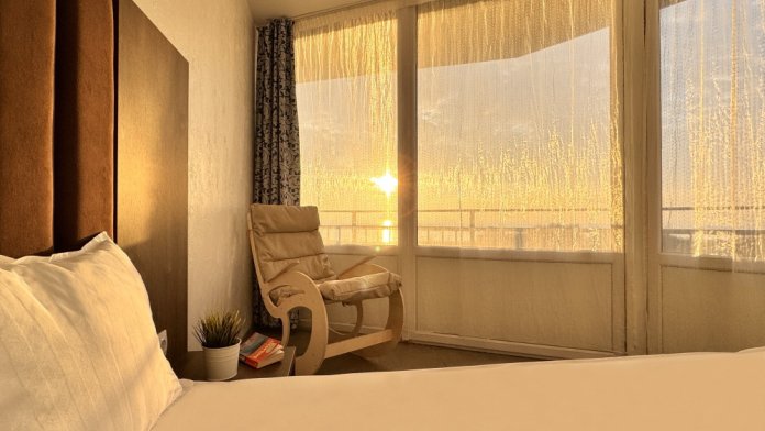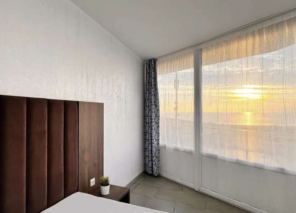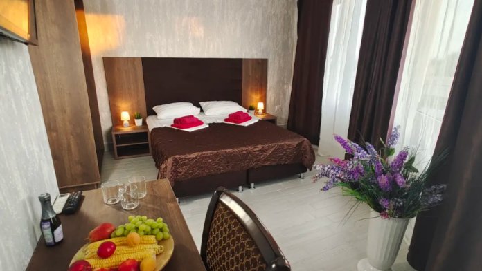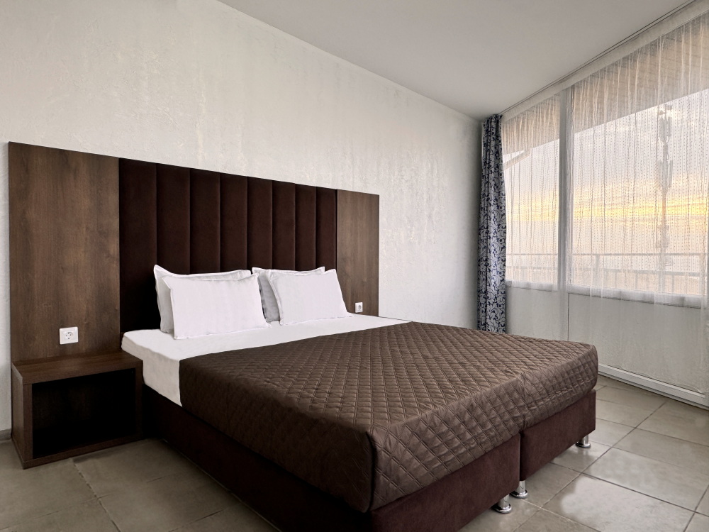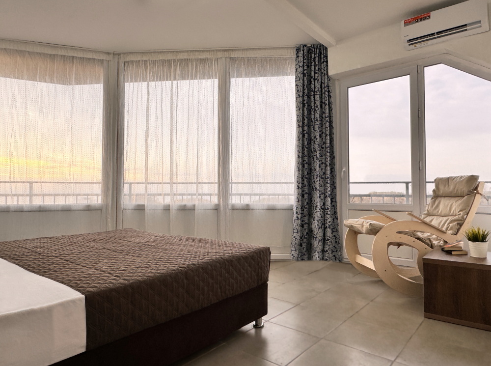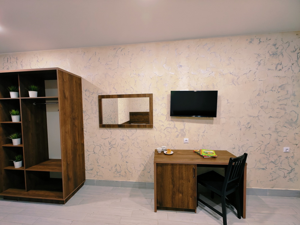 Для вашего комфортного и незабываемого отдыха мы рады предложить прекрасный однокомнатный номер с видом на море. В нем есть все необходимое для вашего отдыха: двуспальная кровать, прикроватные тумбочки, стол, телевизор, мини-холодильник. Также в номере имеется Wi-Fi, для того чтобы вы всегда оставались на связи. Утром вы можете насладиться чашечкой чая или наблюдать за восходом солнца, а вечером отдохнуть на балконе, наслаждаясь морским бризом и потрясающим закатом. Этот номер станет идеальным выбором для романтического уикенда или незабываемого отпуска.