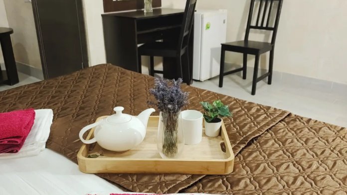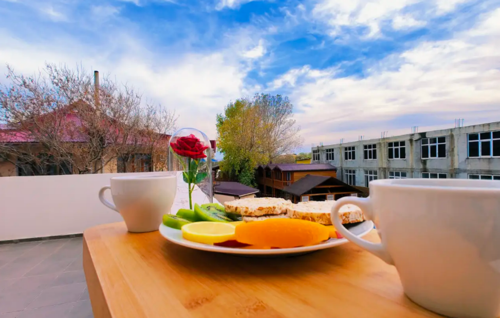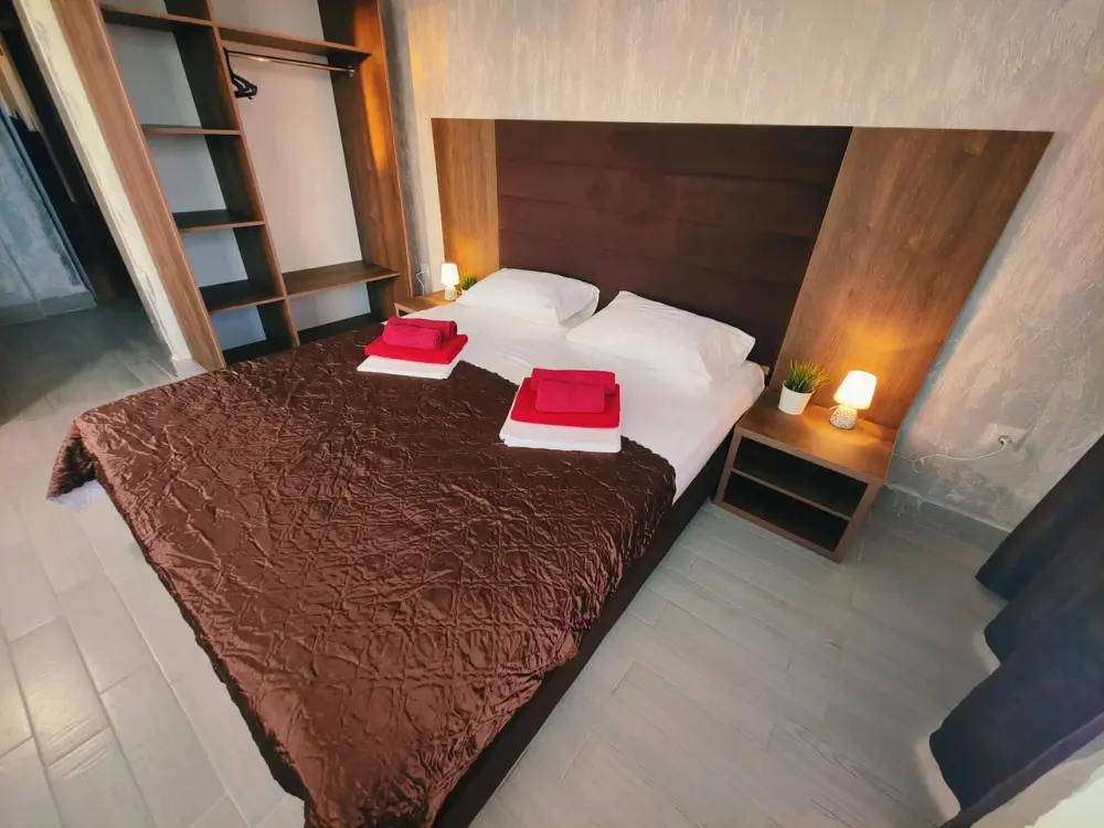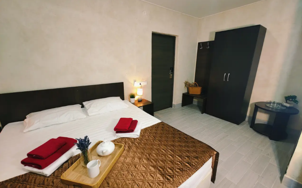 Для вашего комфортного отдыха предлагаем уютный номер «Супериор», оснащен большой двуспальной кроватью и креслом-кроватью. Имеется вся необходимая мебель: прикроватные тумбочки, столик, шкаф для хранения вещей. Номер оборудован удобствами: мини-холодильник, телевизор, Wi-Fi. Также к услугам гостей просторная общая терраса с зоной отдыха, идеально подходящая для утреннего кофе, отдыха на свежем воздухе или наслаждения живописными видами.