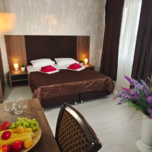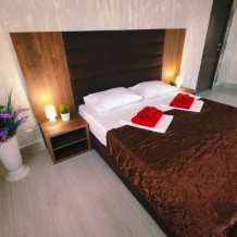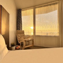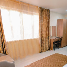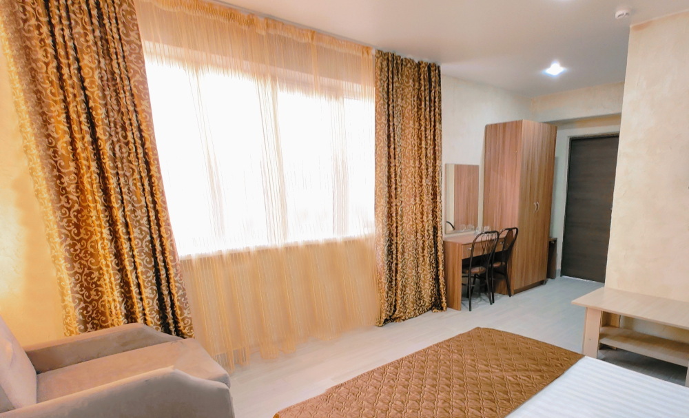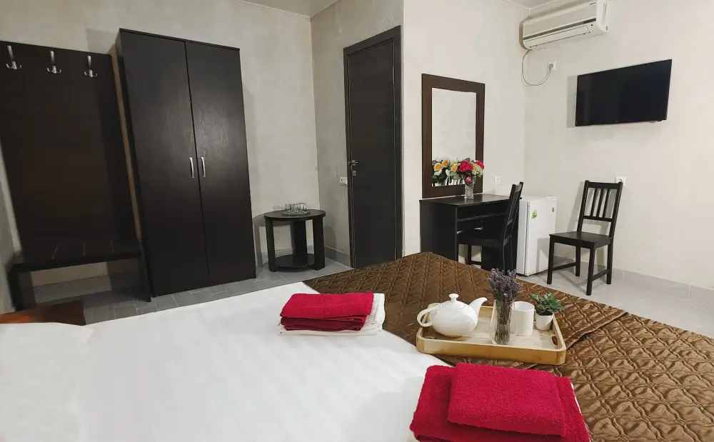 Для вашего комфортного отдыха мы предлагаем уютный номер категории «Супериор», оснащенный большой двуспальной кроватью, столиком и вместительным шкафом. В номере также имеются: мини-холодильник, телевизор и Wi-Fi для доступа в интернет. Особенностью номера является общая терраса с зоной отдыха, где Вы сможете наслаждаться утренним солнцем и свежим воздухом.