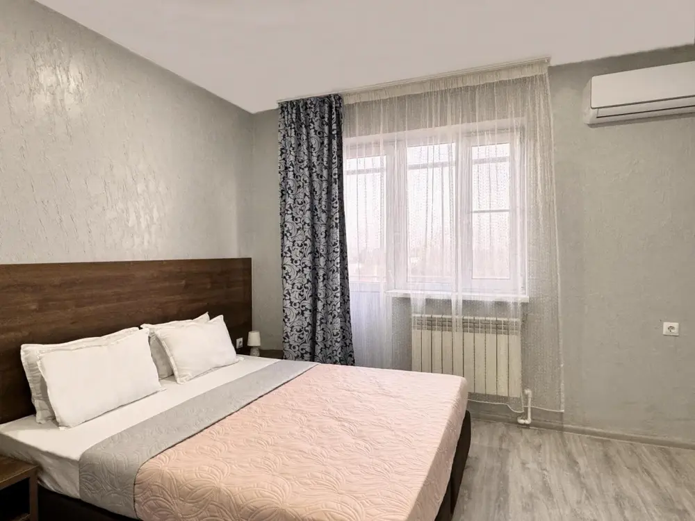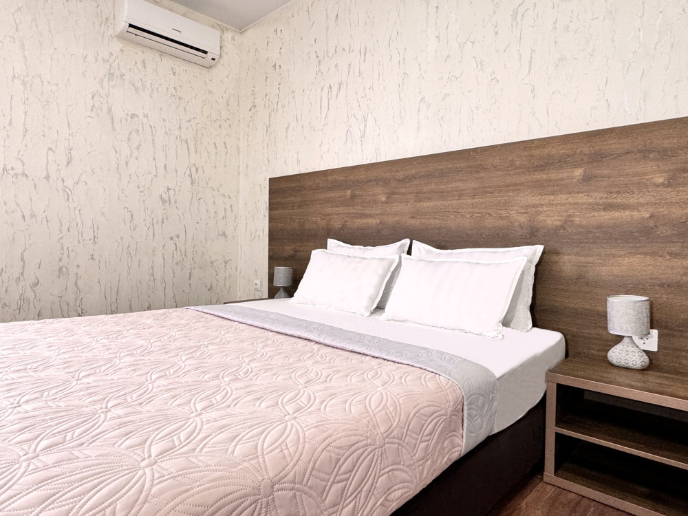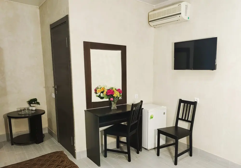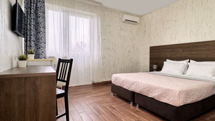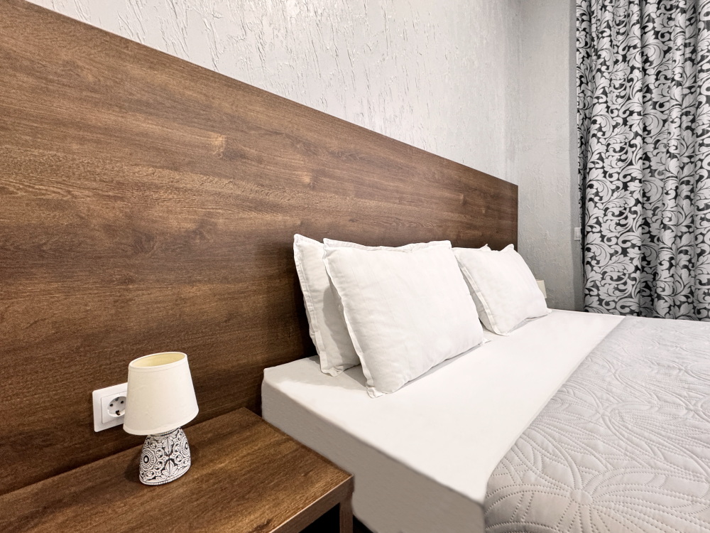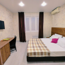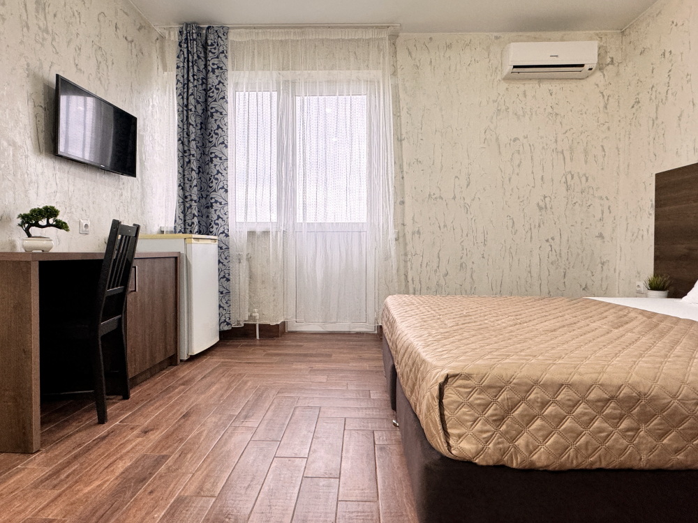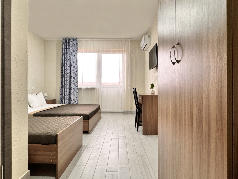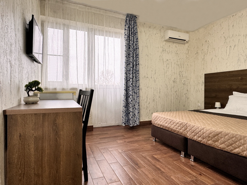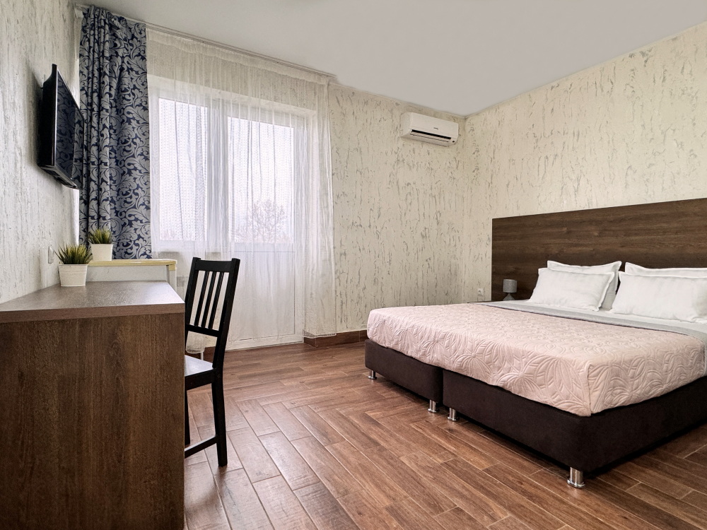 Комфортный номер для проживания двух гостей. Номер оснащен: Двуспальная кровать, прикроватные тумбочки, телевизор, мини-холодильник, стол, стулья, кондиционер. Чтобы Вы всегда оставались на связи, мы предоставляем бесплатный Wi-Fi на всей территории. Номер с балконом. Санузел и душ в номере.