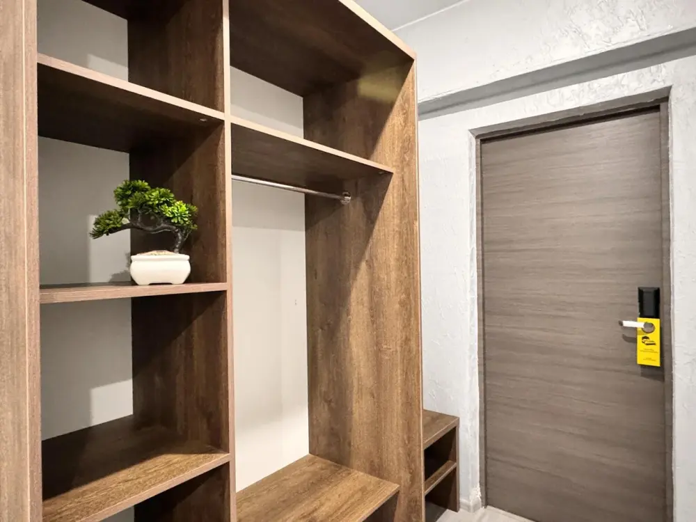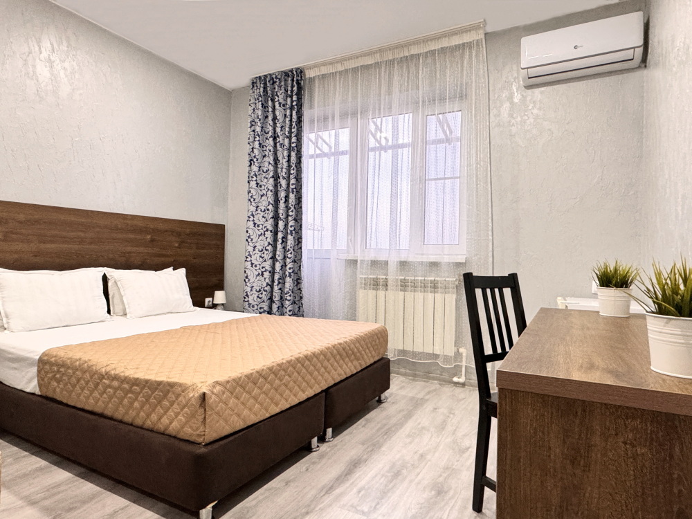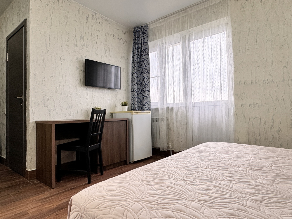 Уютный двухместный номер. В номере двуспальная кровать, телевизор, шкаф для хранения вещей, мини-холодильник и кондиционер, wi-fi, прикроватные тумбочки, стул и стол. Санузел с душем обеспечивает удобство для гостей. Небольшое окно. Номер без балкона.