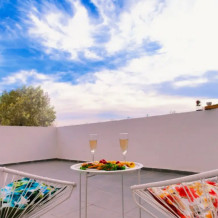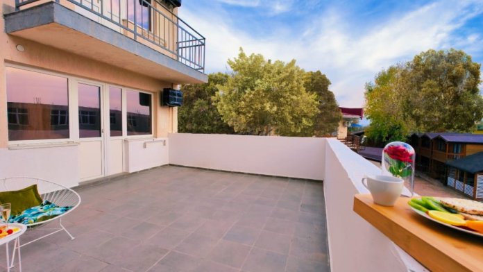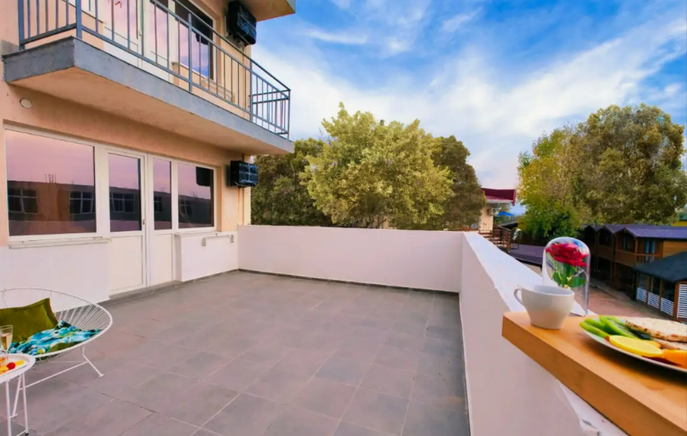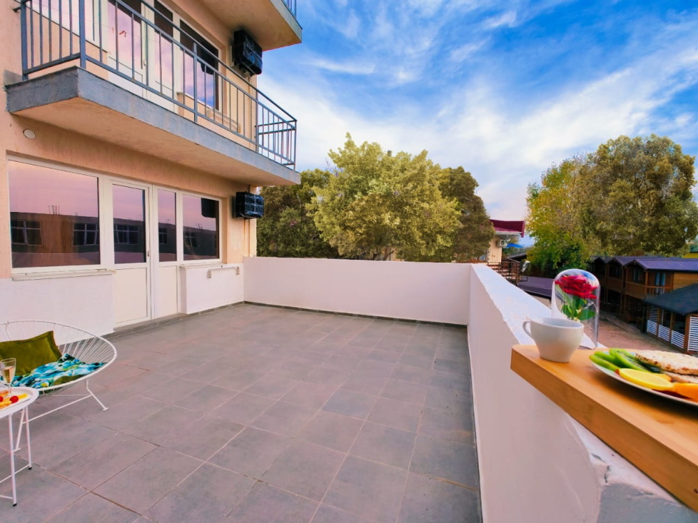 Мы рады предложить номер категории «Супериор с общей террасой». Номер оснащен: двуспальной кроватью, односпальной кроватью и креслом-кроватью. В номере присутствует вся необходимая мебель — прикроватные тумбочки, столик, шкаф. Также к вашим услугам мини-холодильник, телевизор, Wi-Fi. Для вашего удобства и комфорта имеется просторная общая терраса с зоной отдыха, которая идеально подойдет для утреннего завтрака, дневного отдыха или ужина на свежем воздухе. Этот номер отлично подойдет для проживания семей с детьми или небольших компаний друзей.