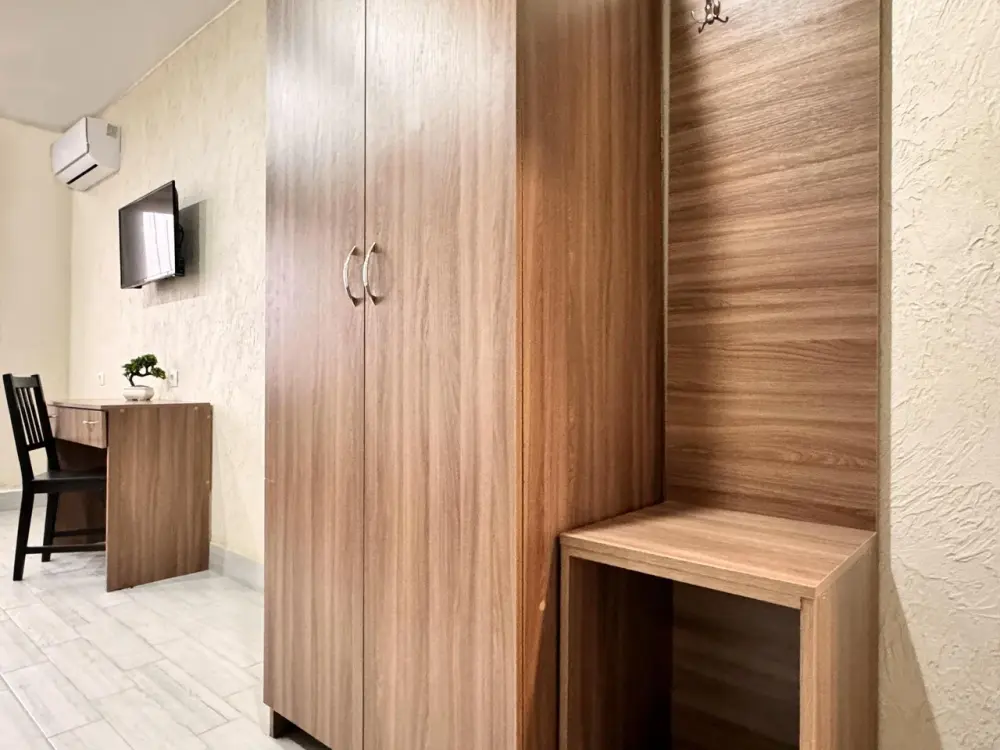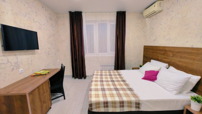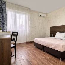 В номере есть все необходимое для комфортного проживания и отдыха: двуспальная кровать, прикроватные тумбочки, стол, стулья, шкаф для одежды, мини-холодильник, телевизор, кондиционер, а так же wi-fi. Номер без балкона.