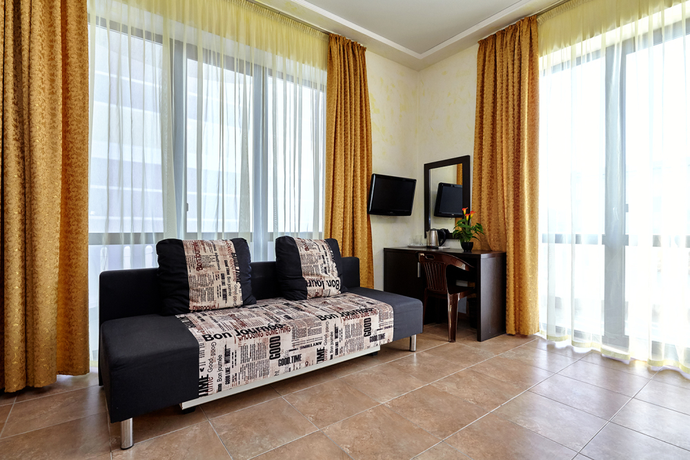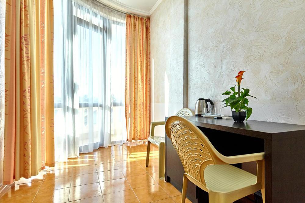 Одним из преимуществ местоположения отеля — это его незначительная удаленность от набережной, что позволит Вам и Вашей семье спокойно спать с открытыми окнами и вдыхать чистейший горный и морской воздух!