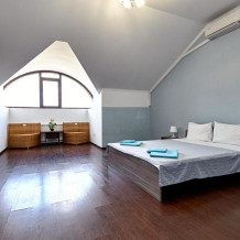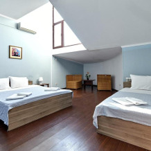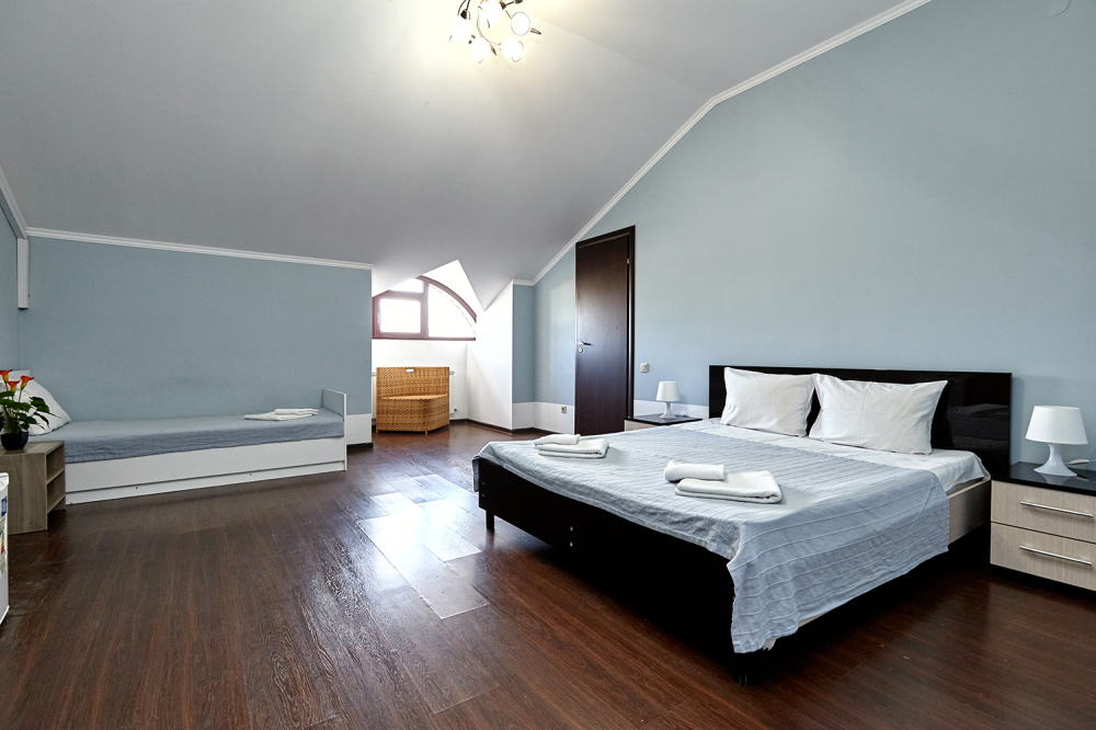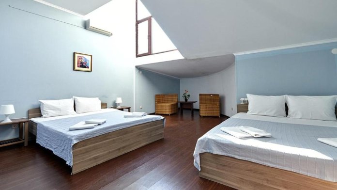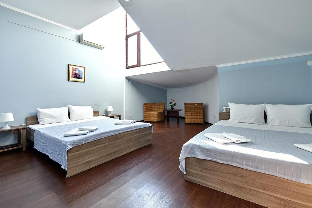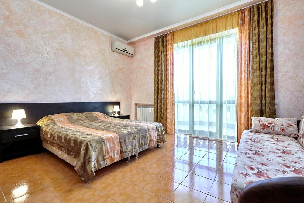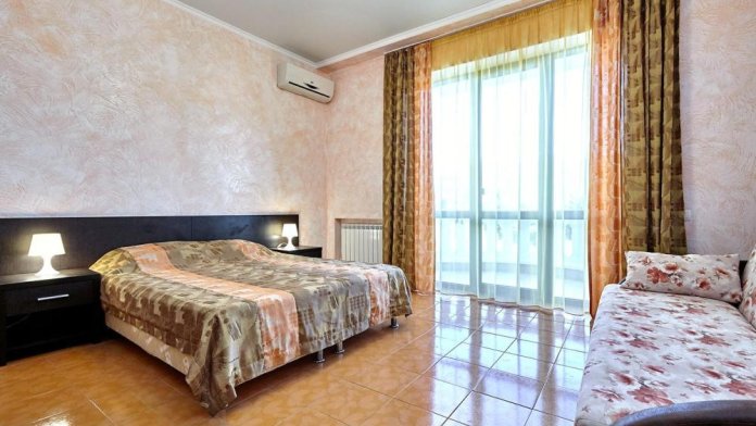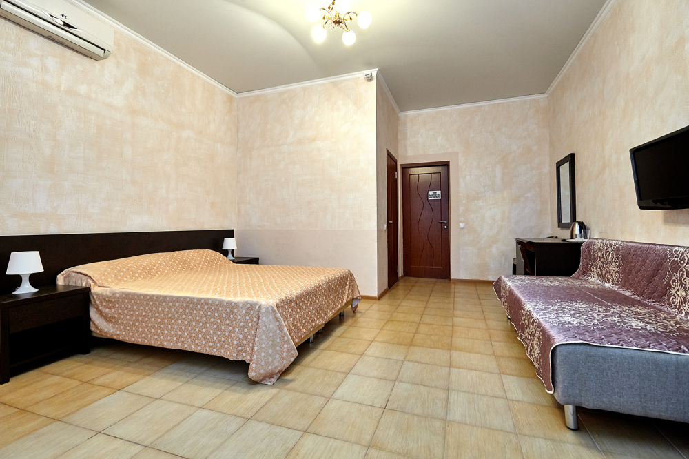Улучшенный четырехместный номер! Номера с удобствами оборудованы всем необходимым для комфортного отдыха. В каждом номере сплит-система, телевизор с плоским экраном, холодильник, электрочайник, набор посуды, собственная ванная комната с душем, балкон. В каждом номере возможна установка дополнительного места!