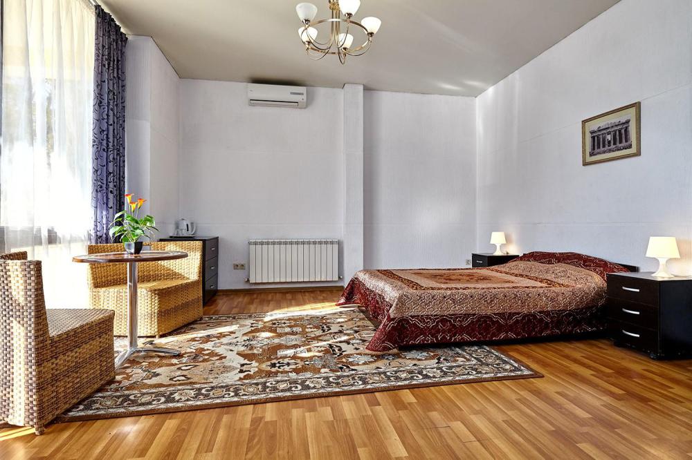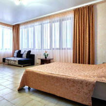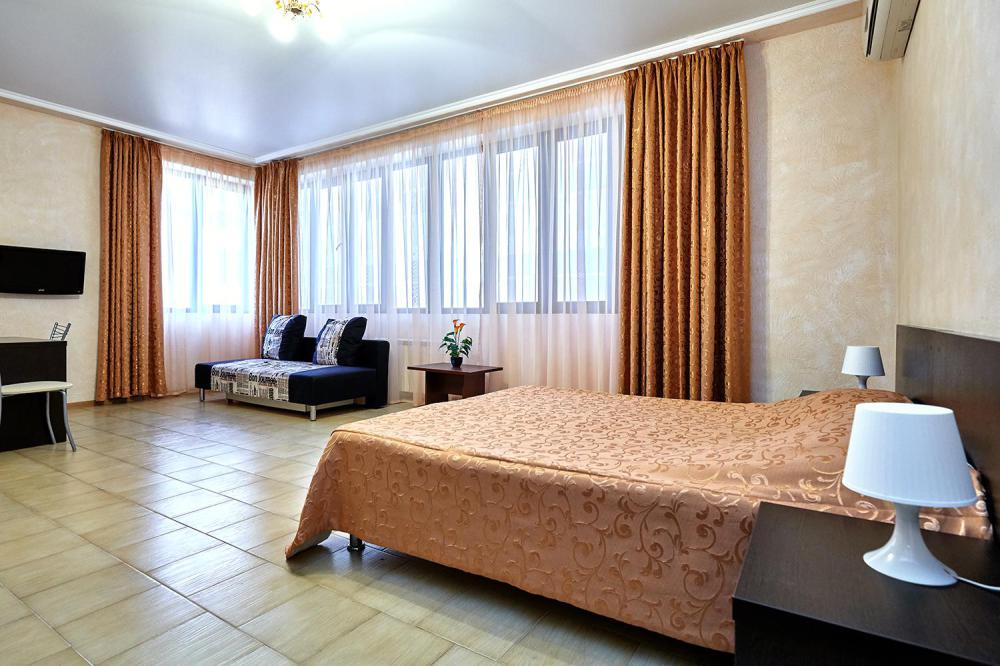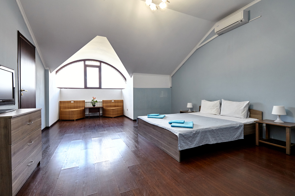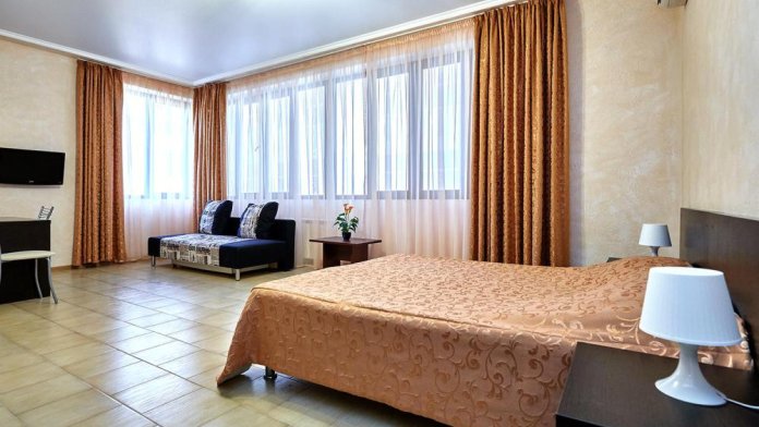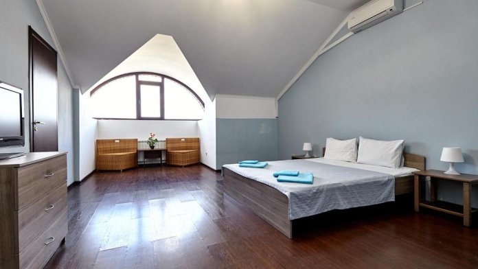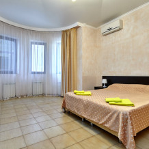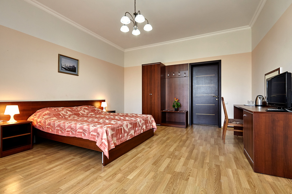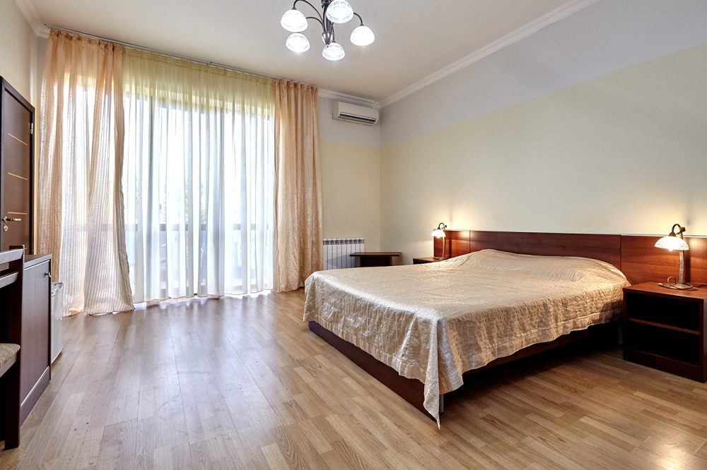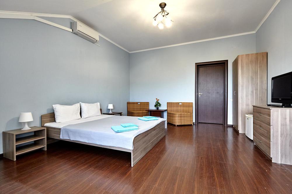 Улучшенный двухместный номер с одной двуспальной кроватью! Номера с удобствами оборудованы всем необходимым для комфортного отдыха. В каждом номере сплит-система, телевизор с плоским экраном, холодильник, электрочайник, набор посуды, собственная ванная комната с душем. В каждом номере возможна установка дополнительного места!