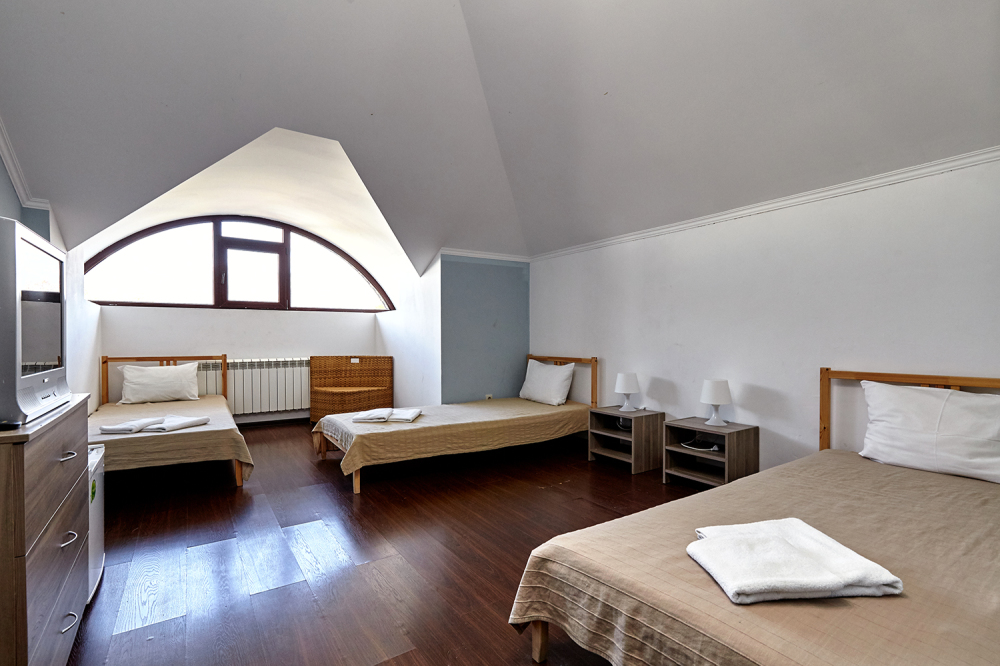 Стандартный трехместный номер! Номера с удобствами оборудованы всем необходимым для комфортного отдыха. В каждом номере сплит-система, телевизор с плоским экраном, холодильник, электрочайник, набор посуды, собственная ванная комната с душем. В каждом номере возможна установка дополнительного места!