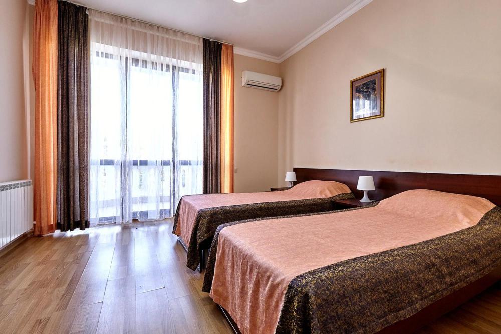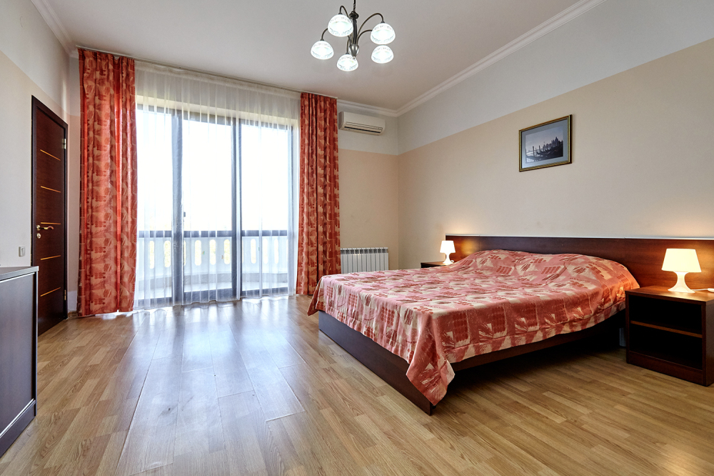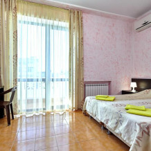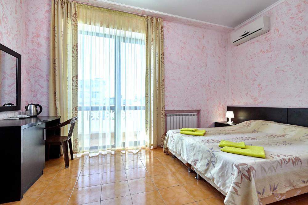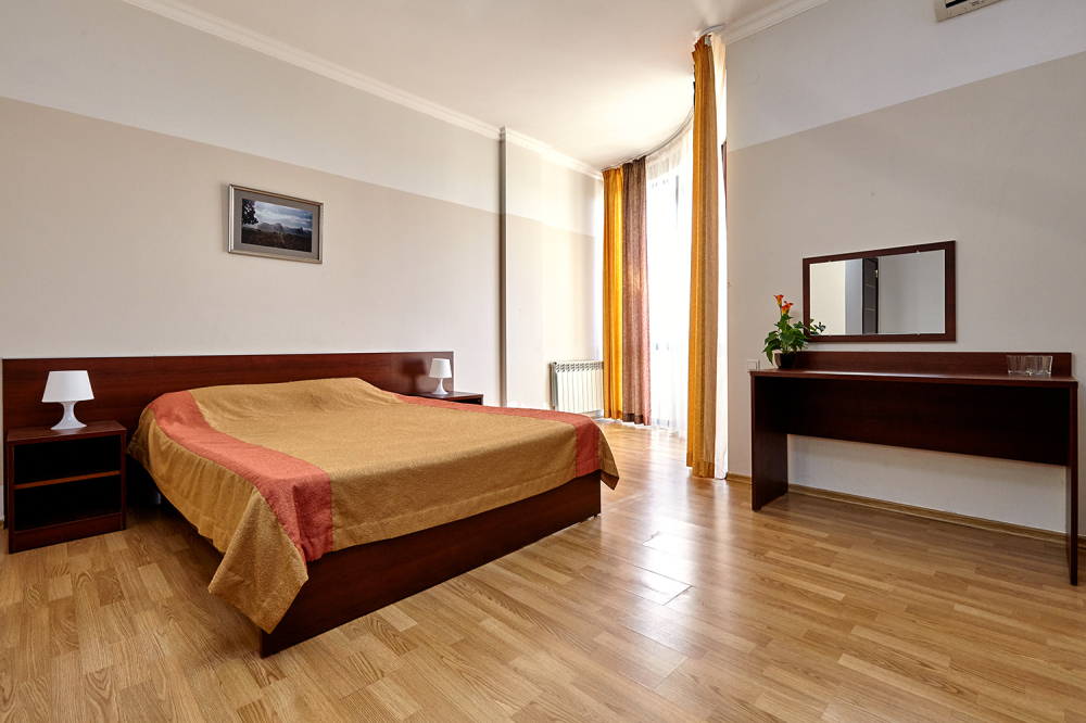 Стандартный двухместный номер с 1 кроватью или 2 отдельными кроватями и балконом! Номера с удобствами оборудованы всем необходимым для комфортного отдыха. В каждом номере сплит-система, телевизор с плоским экраном, холодильник, электрочайник, набор посуды, собственная ванная комната с душем, балкон. В каждом номере возможна установка дополнительного места!