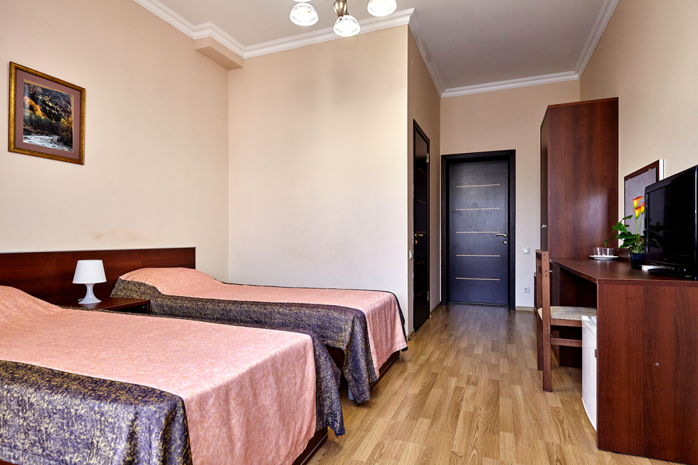 2-местный номер эконом-класса с 1 кроватью или 2 отдельными кроватями! Номера с удобствами оборудованы всем необходимым для комфортного отдыха. В каждом номере сплит-система, телевизор с плоским экраном, холодильник, электрочайник, набор посуды, собственная ванная комната с душем. В каждом номере возможна установка дополнительного места!