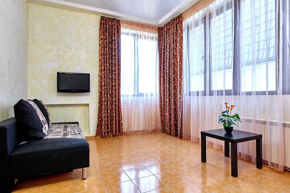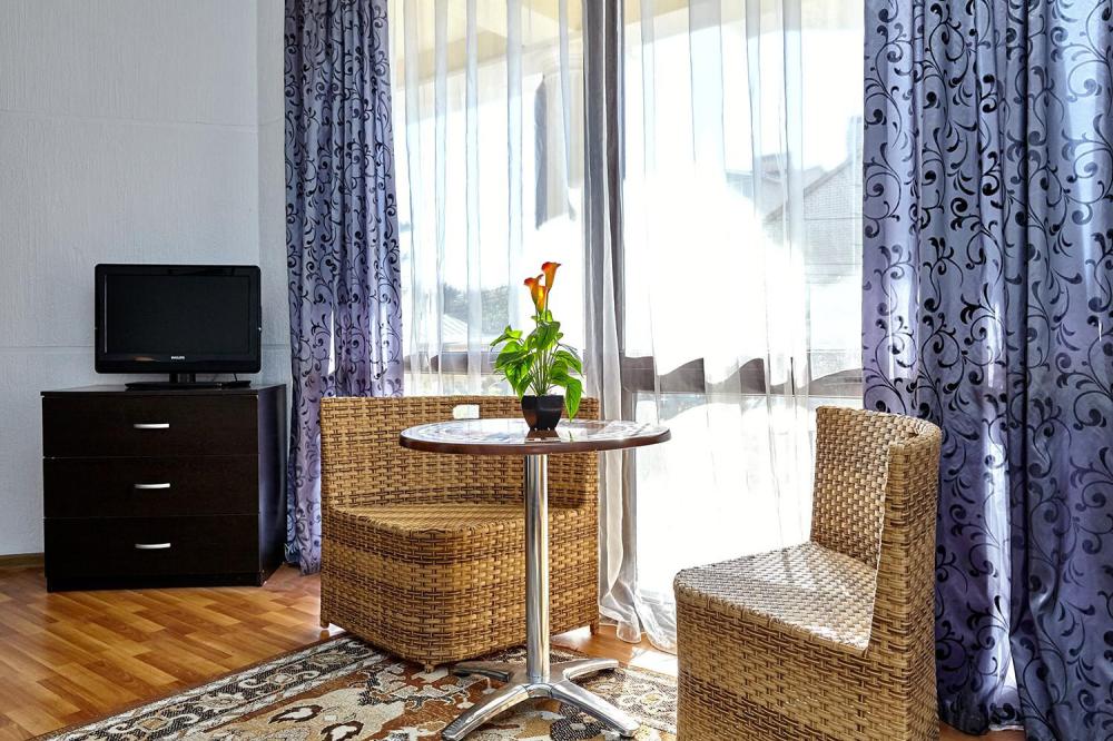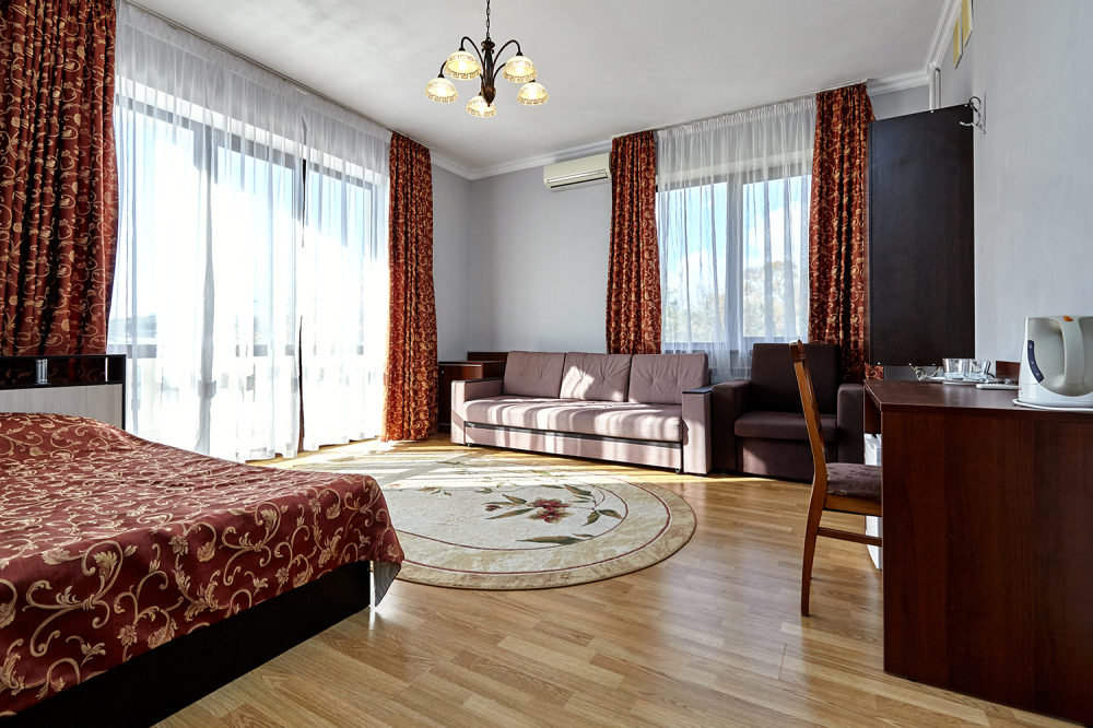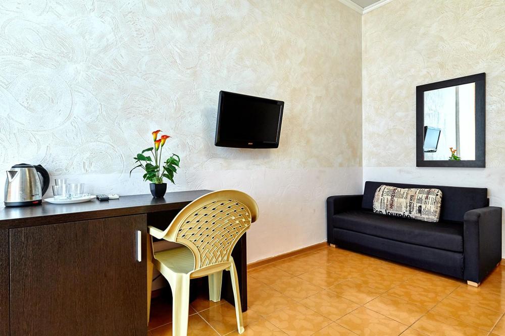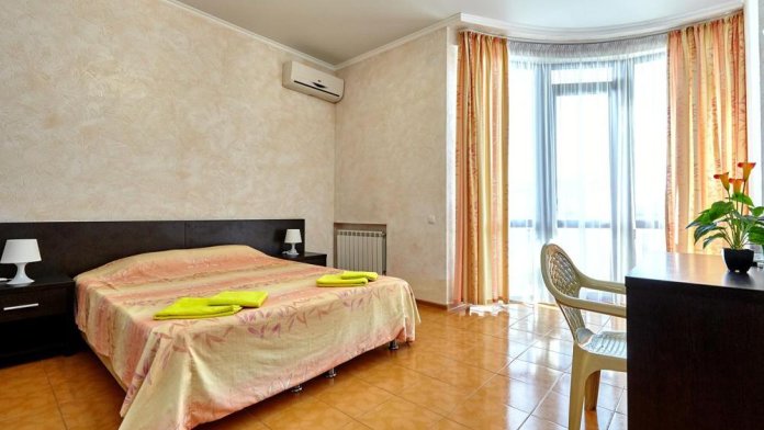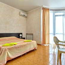 Номера с удобствами оборудованы всем необходимым для комфортного отдыха. В каждом номере сплит-система, телевизор с плоским экраном, холодильник, электрочайник, набор посуды, собственная ванная комната с душем, балкон.