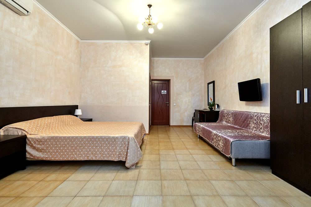 Трехместный номер эконом-класса! Номера с удобствами оборудованы всем необходимым для комфортного отдыха. В каждом номере сплит-система, телевизор с плоским экраном, холодильник, электрочайник, набор посуды, собственная ванная комната с душем. В каждом номере возможна установка дополнительного места!