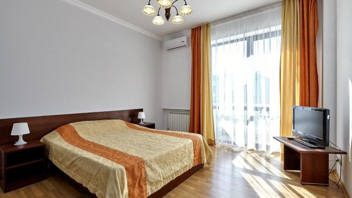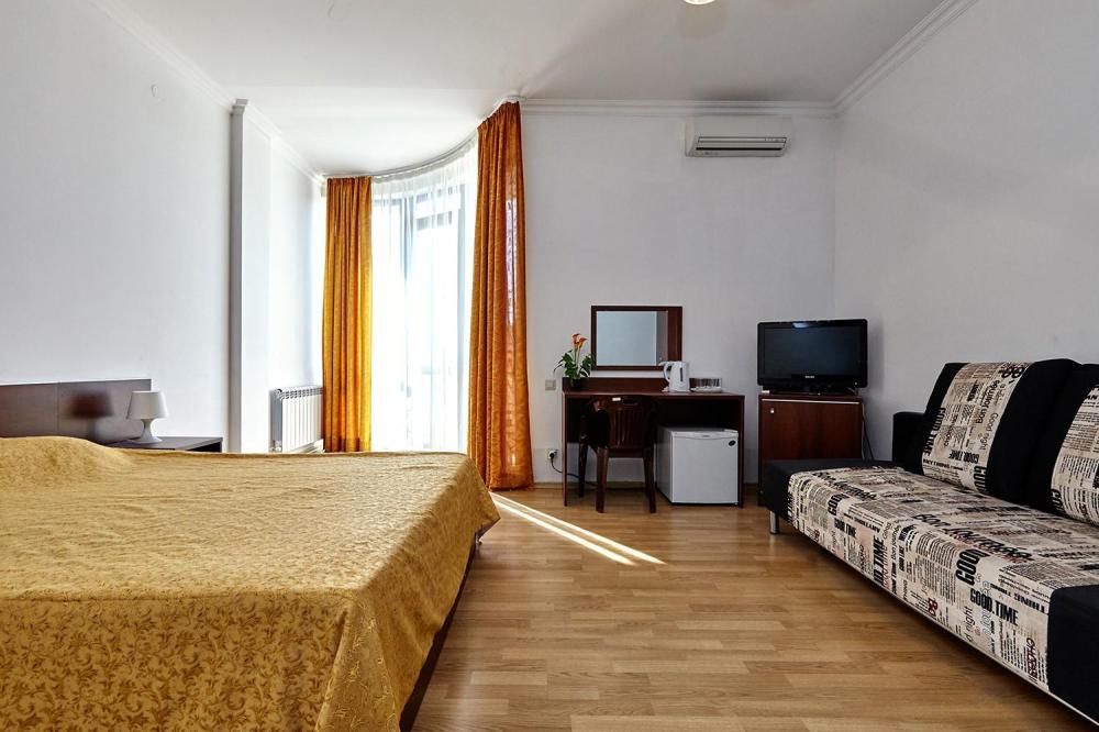 Номера с удобствами оборудованы всем необходимым для комфортного отдыха. В каждом номере сплит-система, телевизор с плоским экраном,холодильник,собственная ванная комната с душем,имеется балкон.