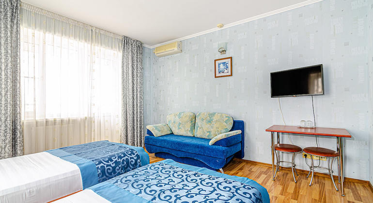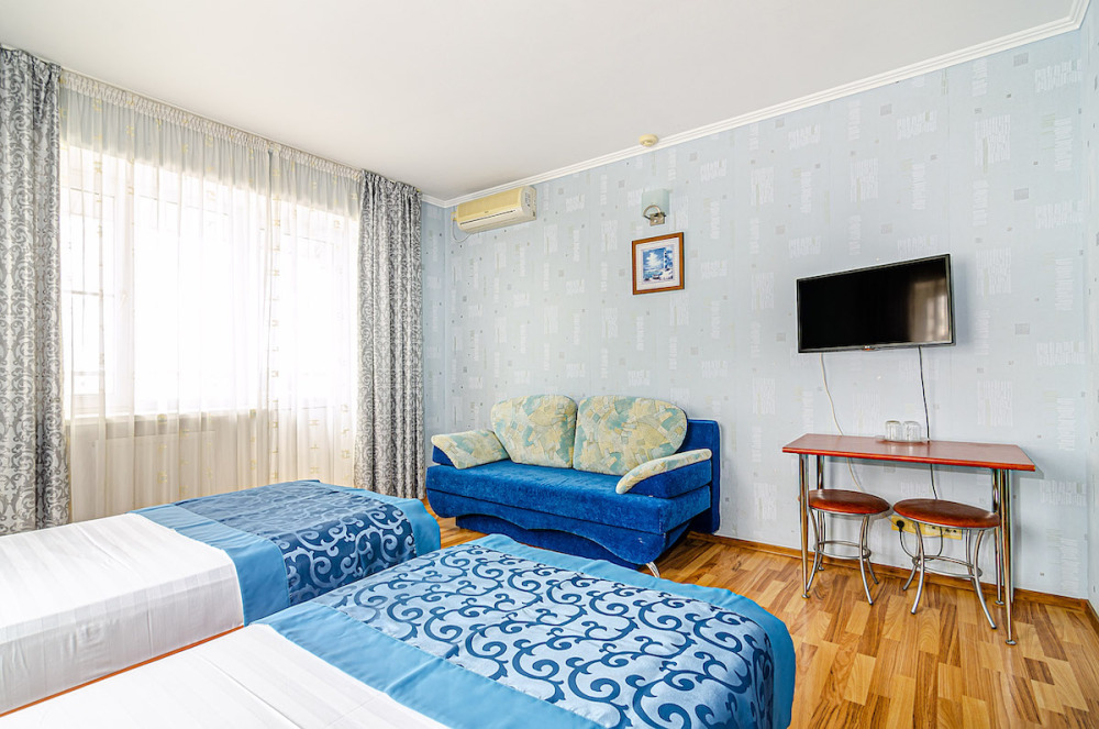 Просторный номер в гостевом доме «Бухта Радости» прекрасно подходит для большой семьи или компании до восьми человек.