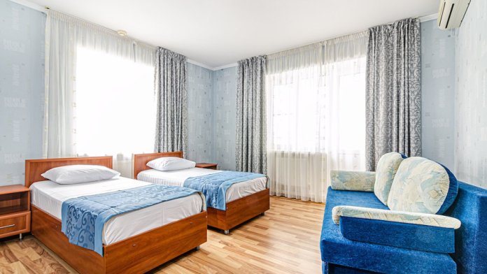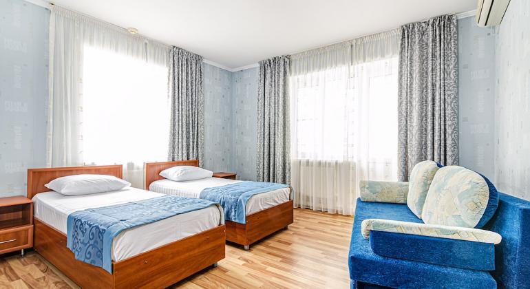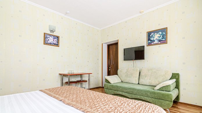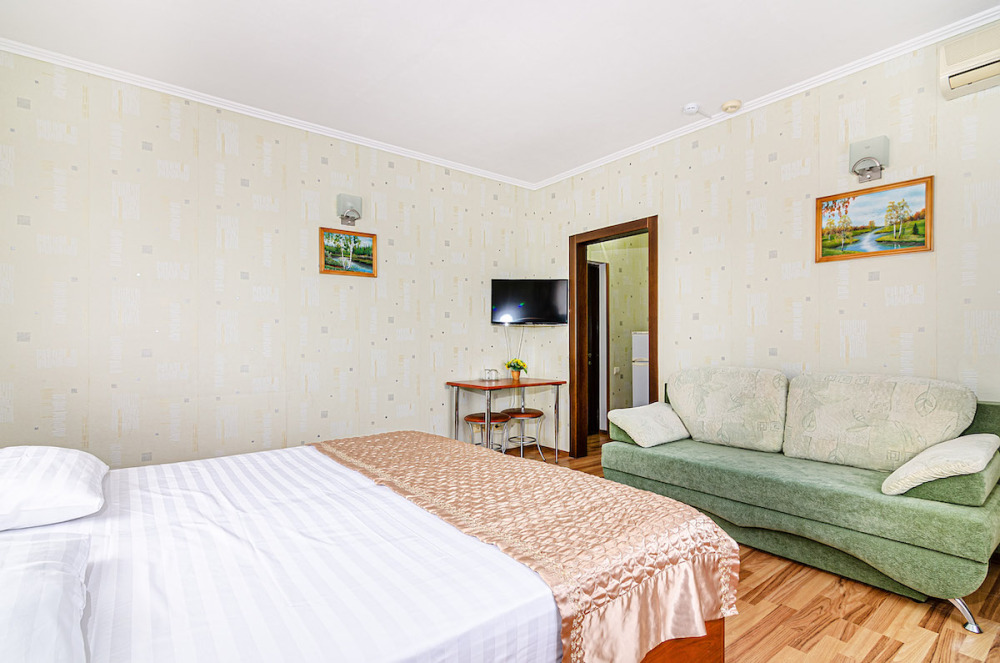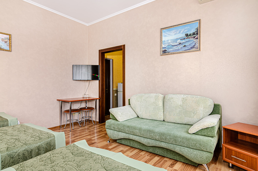 Современный номер в гостевом доме «Бухта Радости» прекрасно подходит для большой семьи или компании до пяти человек.