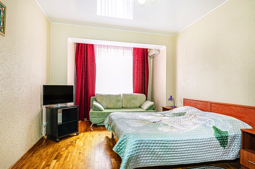 Современные двухкомнатные апартаменты с евроремонтом и полным оснащением прекрасно подходят для большой семьи или компании до шести человек.