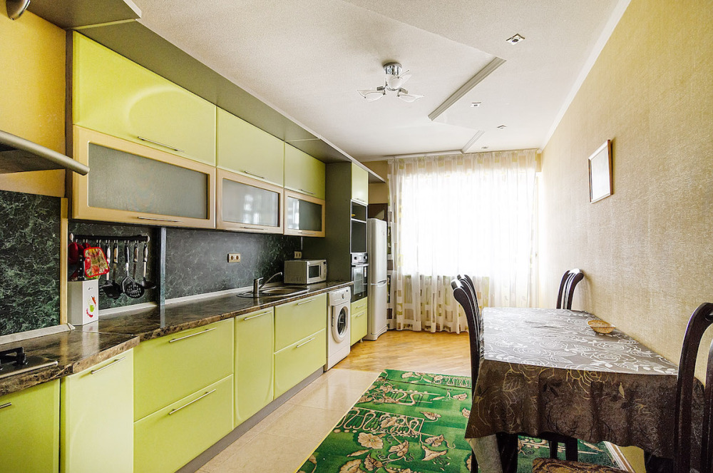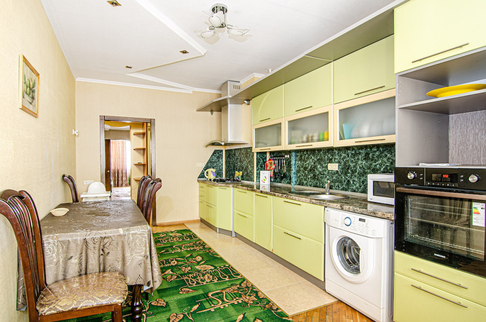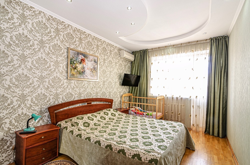 Просторные трехкомнатные апартаменты с евроремонтом и полным оснащением прекрасно подходит для большой семьи или компании до восьми человек.