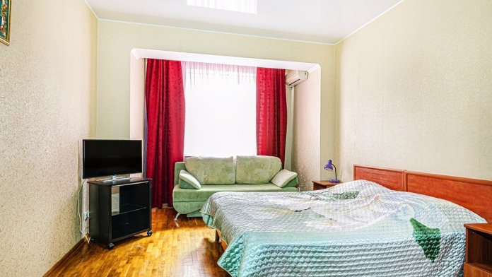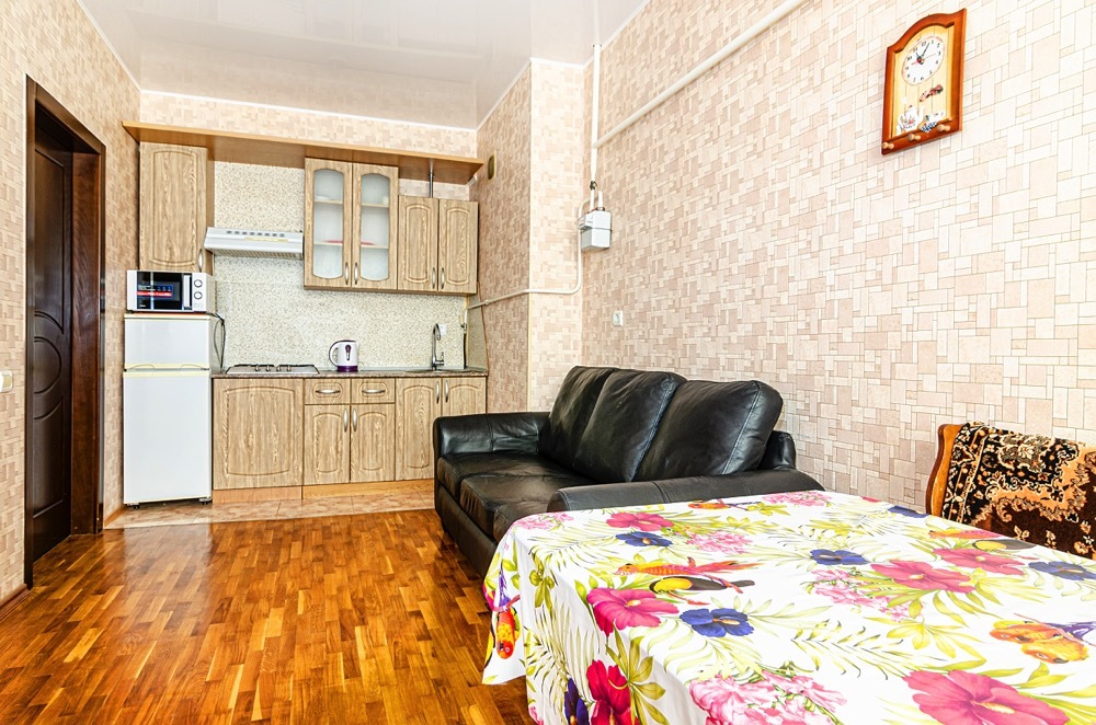 Уютные однокомнатные апартаменты с евроремонтом и полным оснащением прекрасно подходят для семьи или компании до пяти человек.