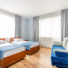 Уютные номера гостевого дома позволят Вам приятно провести отпуск, а на кухне общего пользования Вы сможете приготовить Ваше любимое блюдо. Лифт с двумя выходами обеспечит комфортный отдых для людей с ограниченными возможностями. Обособленный двор с детской площадкой позволит Вам не беспокоиться о досуге Ваших детей. На протяжении всего пребывания в гостевом доме Вы сможете пользоваться открытым и крытым бассейнами, а тёплыми вечерами использовать зону барбекю для приготовления ужина в кругу семьи или друзей. Также Вы можете разнообразить свой отдых посещением SPA-зоны.