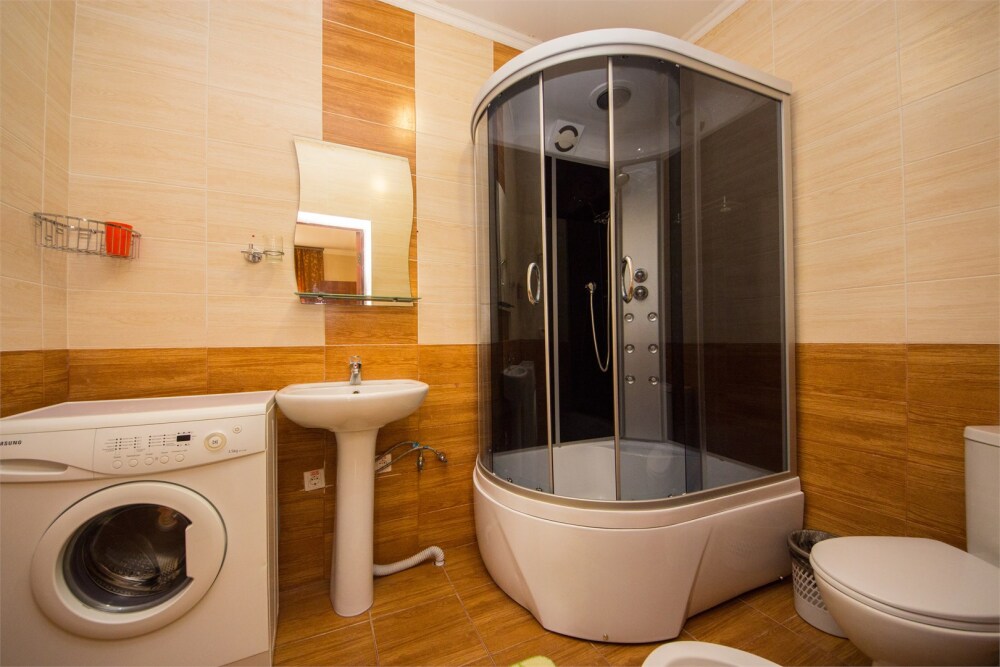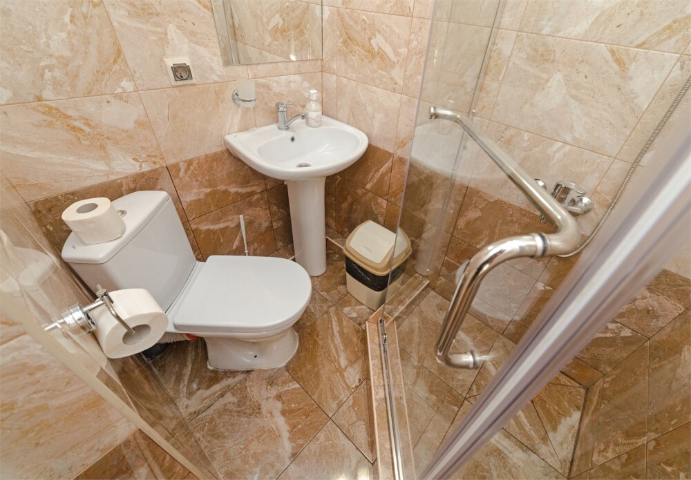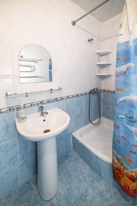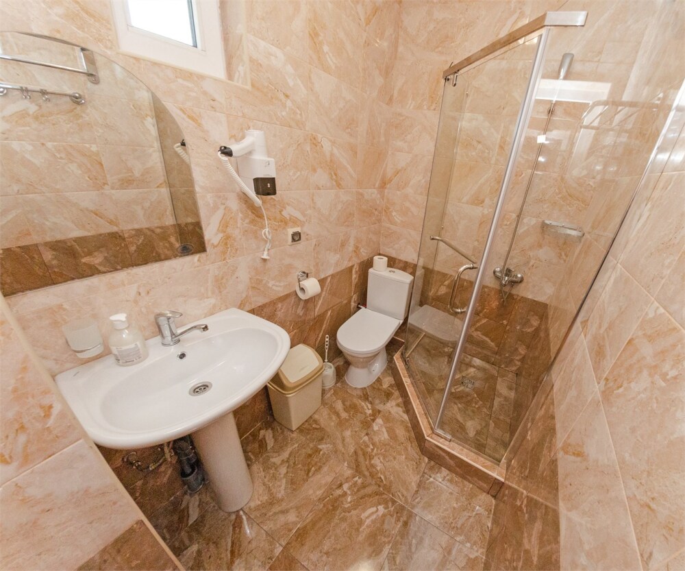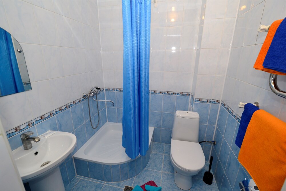 В каждом номере санузел с душем (оборудованный ванными принадлежностями).