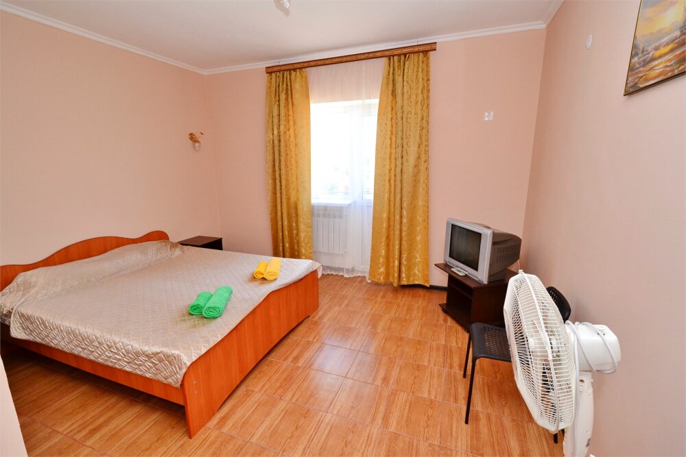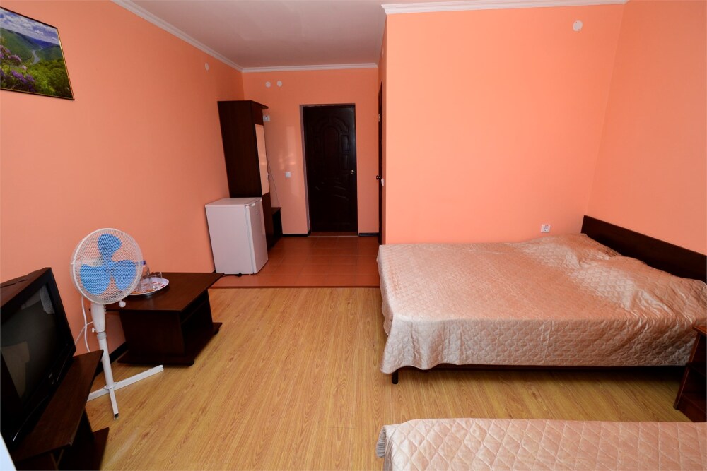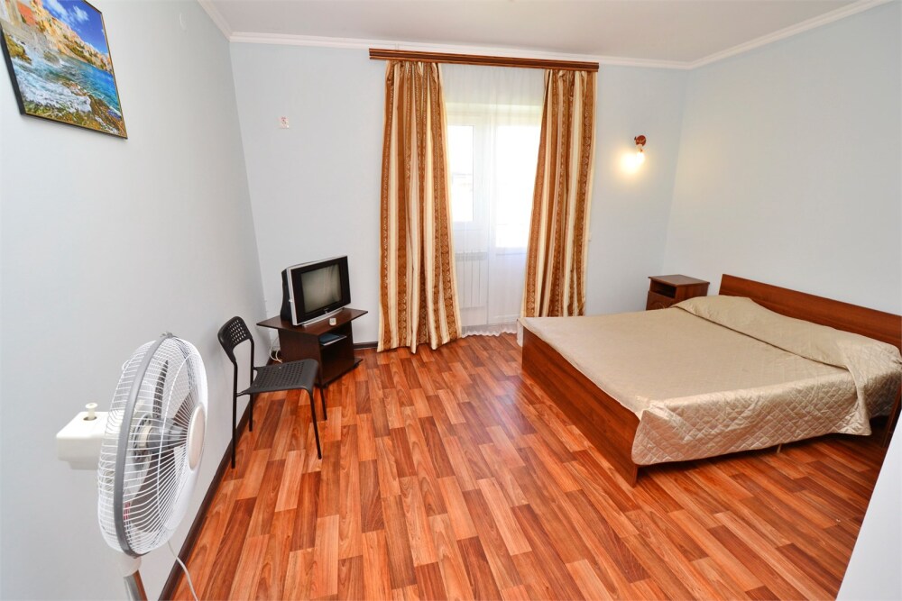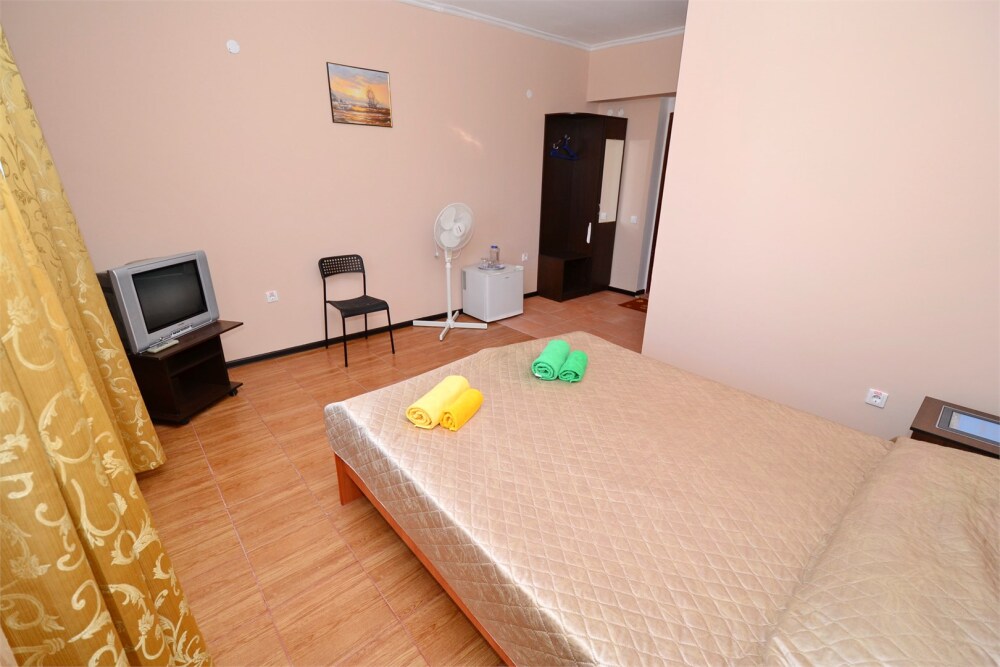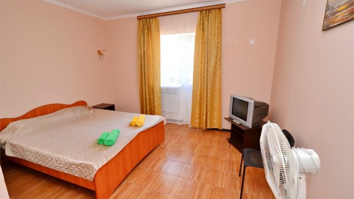 Двуспальная и одна или две односпальные кровати, прикроватные тумбы, журнальный столик, стул, шкаф для одежды, холодильник, телевизор, напольный вентилятор. Во всех номерах, кроме расположенных на 1 этаже, имеется балкон. В каждом номере санузел с душем.