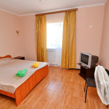 Двуспальная или две односпальные кровати, прикроватные тумбы, журнальный столик, стул, шкаф для одежды, холодильник, телевизор, напольный вентилятор. Во всех номерах, кроме расположенных на 1 этаже, имеется балкон. В каждом номере санузел с душем.