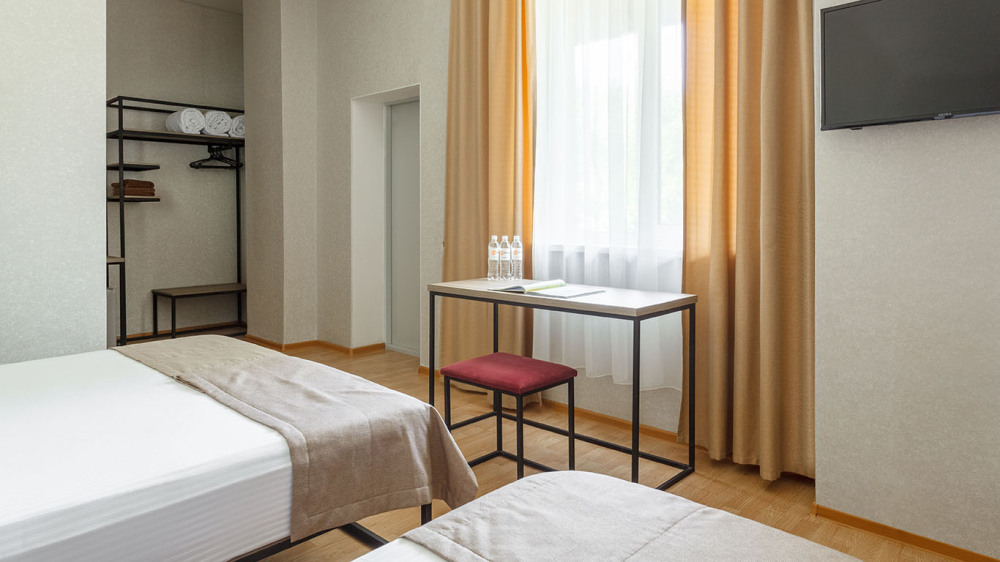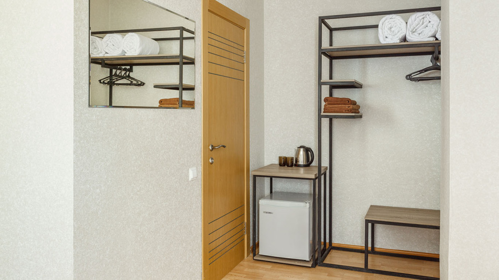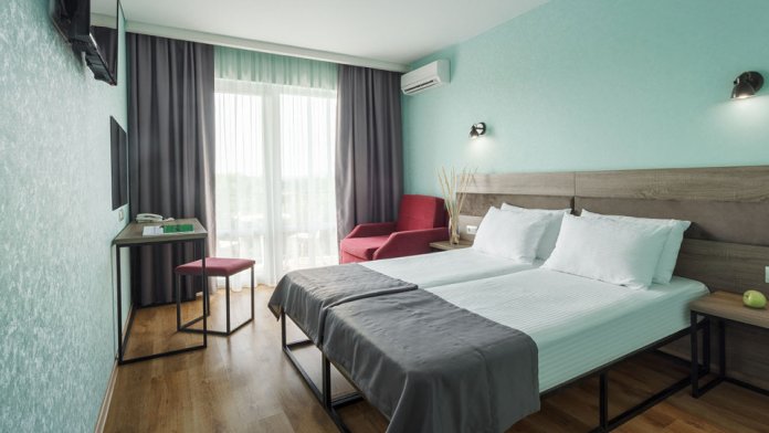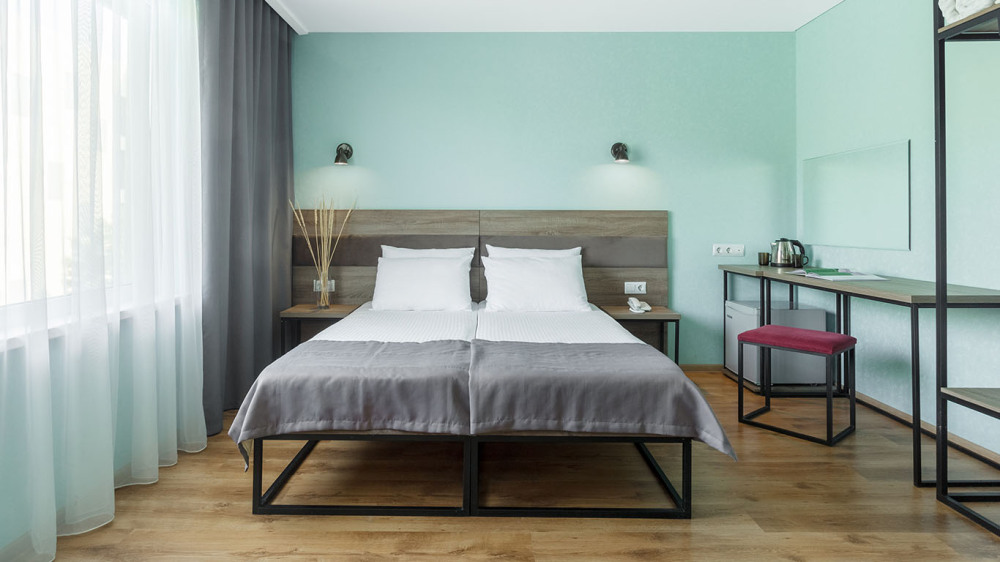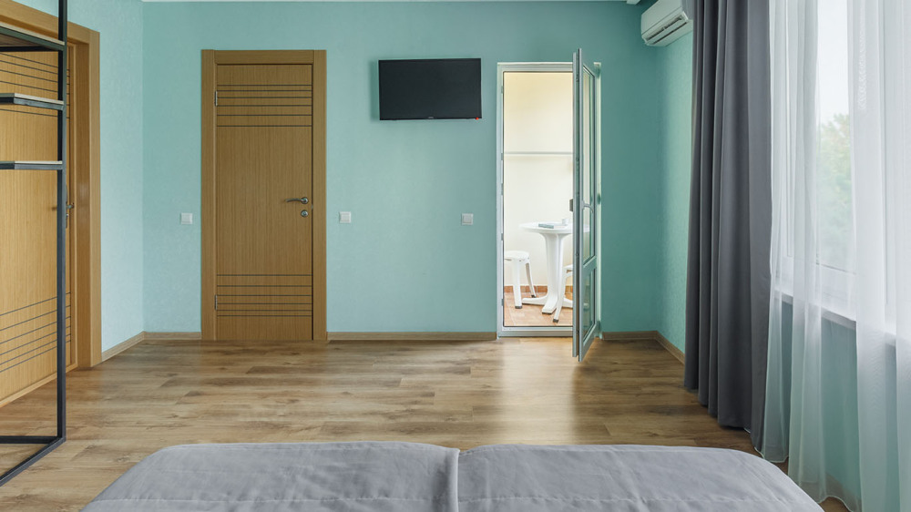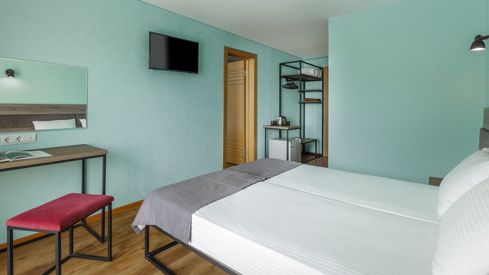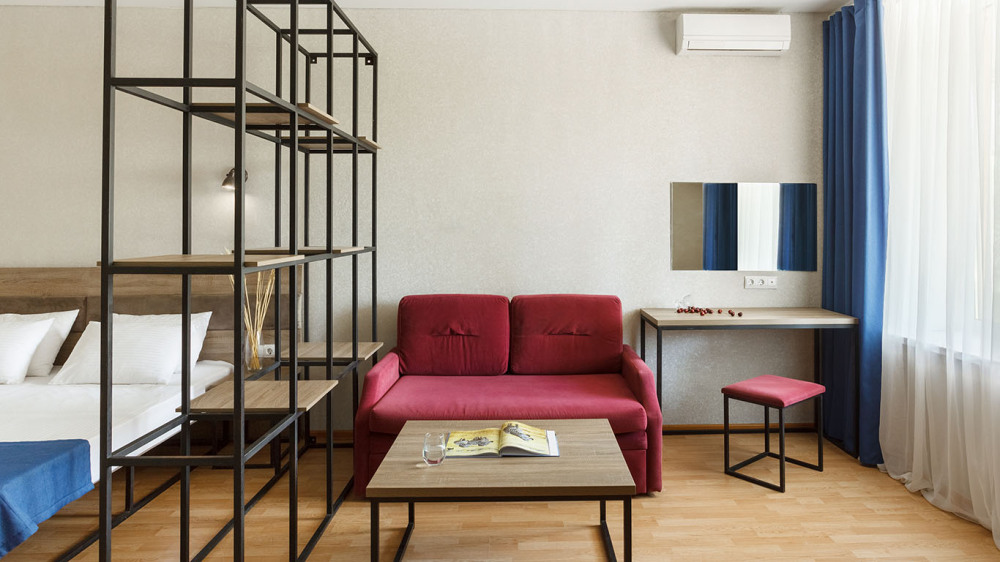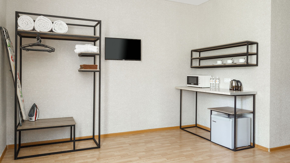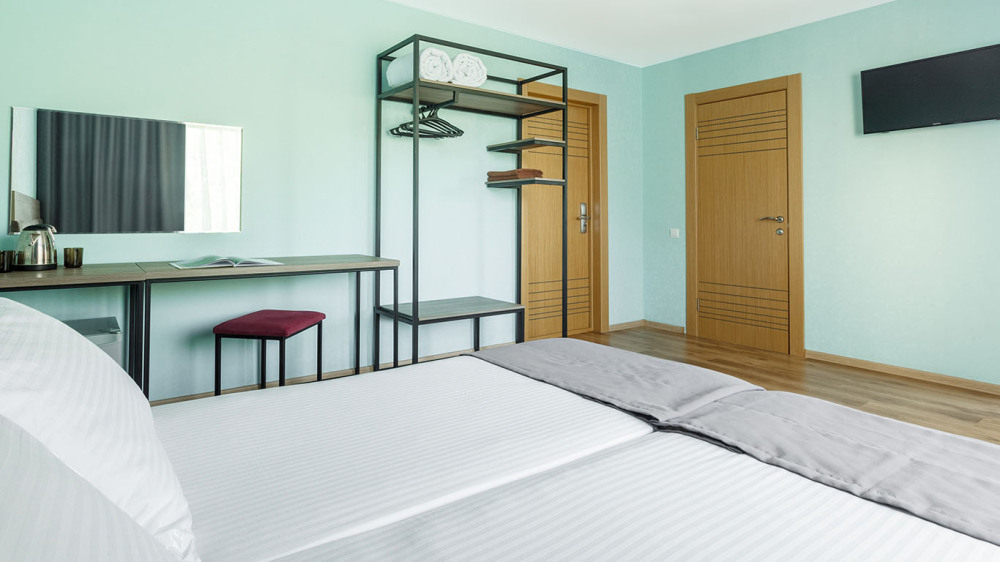В номере: две раздельные или одна двуспальная кровать (бокс-спринг), ТВ, холодильник, эл.чайник, кондиционер (сплит-система), телефон, сейф, балкон с летней мебелью и сушилкой для белья.