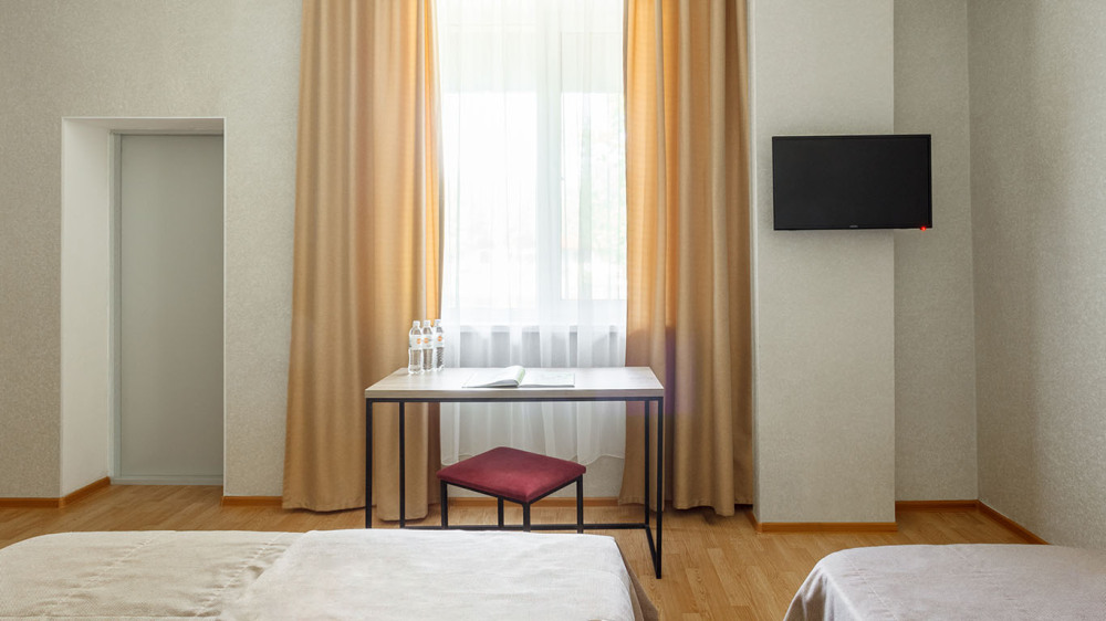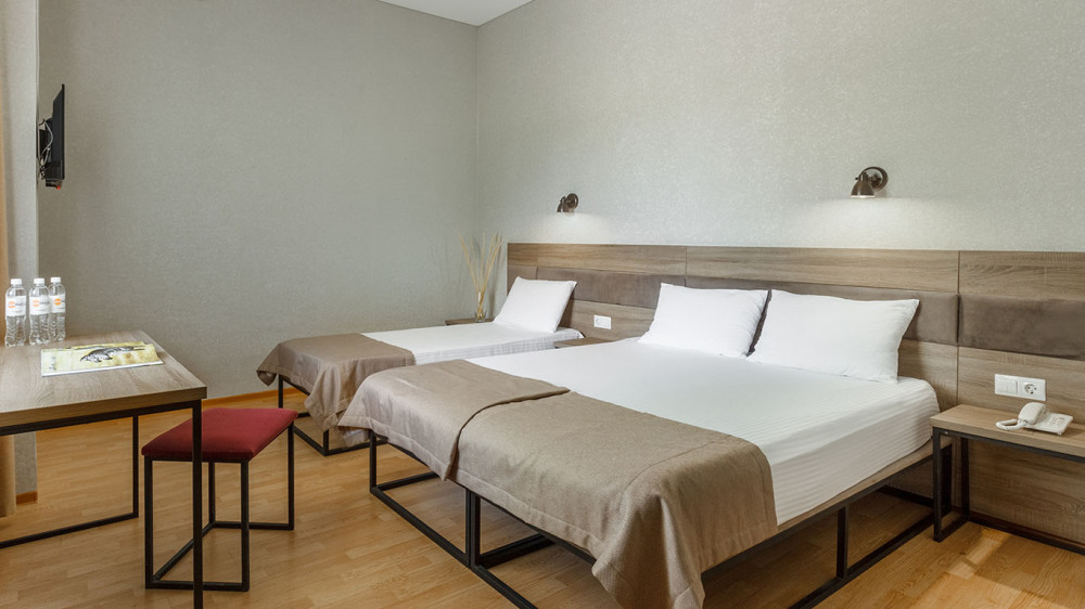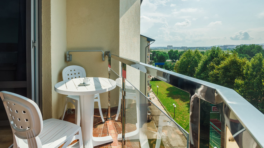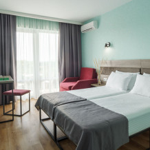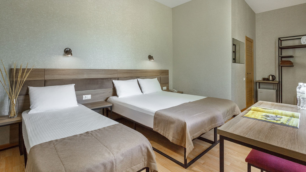 В номере: три раздельные кровати, ТВ, холодильник, эл.чайник, кондиционер (сплит-система), телефон, сейф, балкон с летней мебелью и сушилкой для белья.